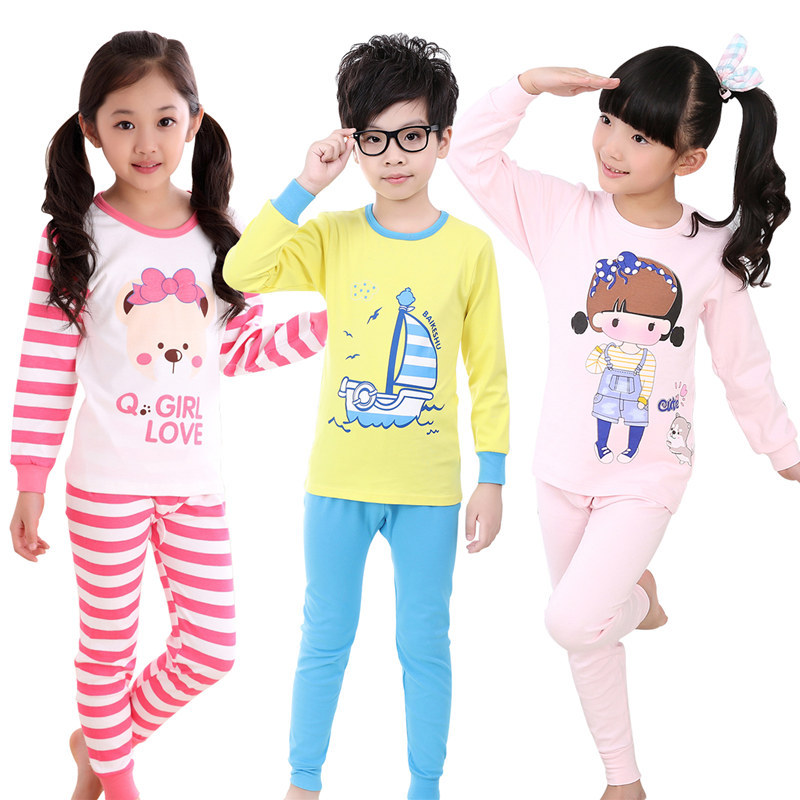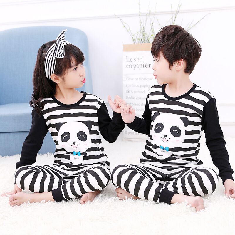 Girls and Boys' Autumn Clothes and Trousers Cotton Sweater Spring and Autumn Big Children's Baby Underwear Set All Cotton Pajamas for Hair