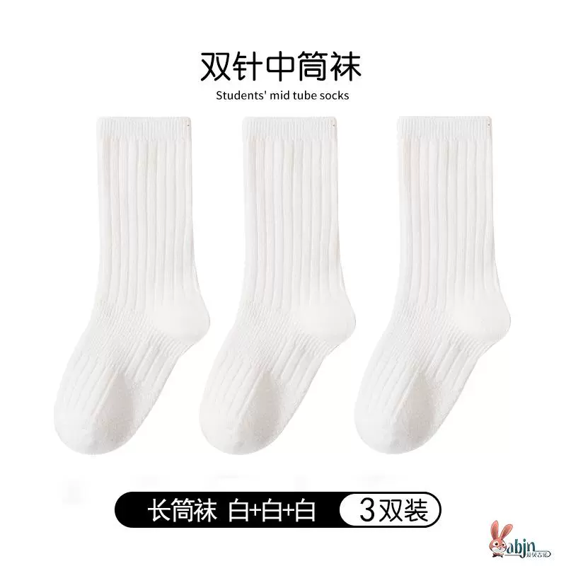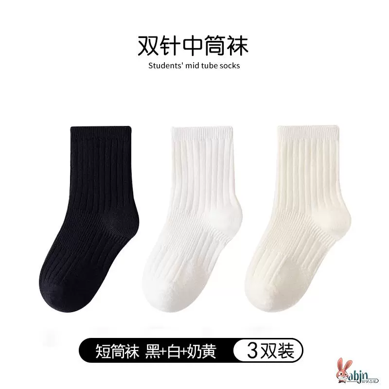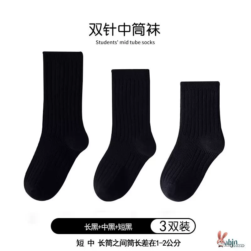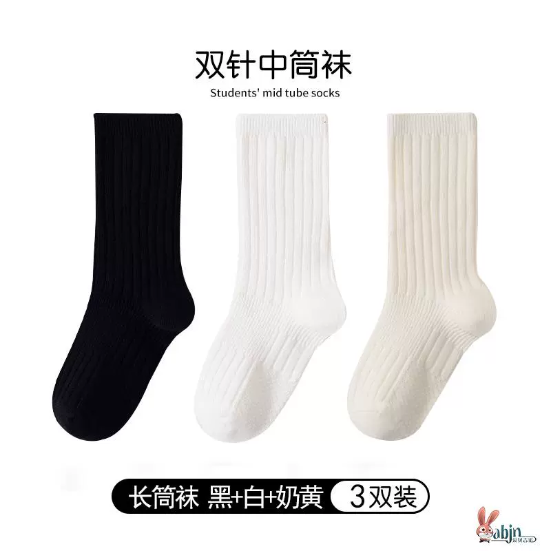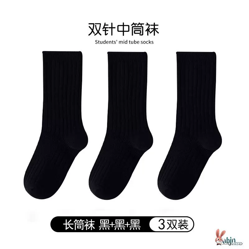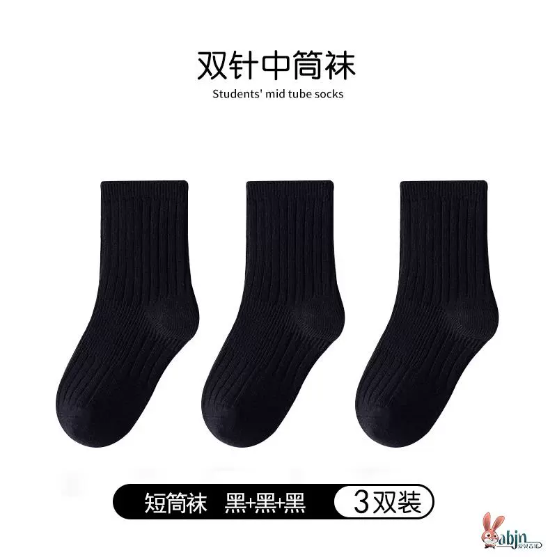 Girls and boys black pure cotton calf socks children’s socks spring and autumn solid color socks mid-calf socks white socks baby cotton socks