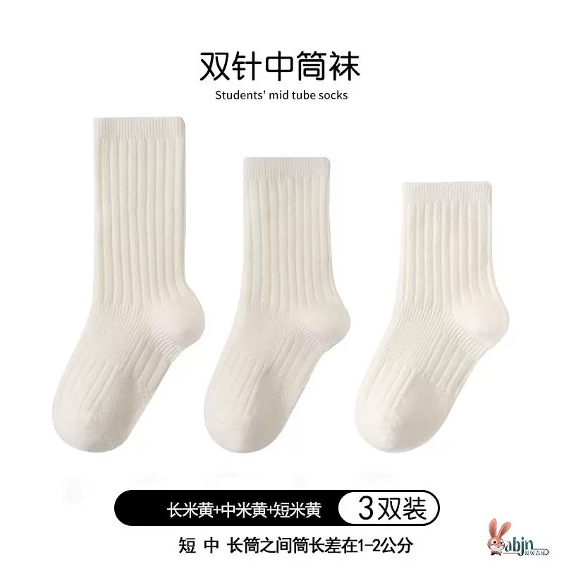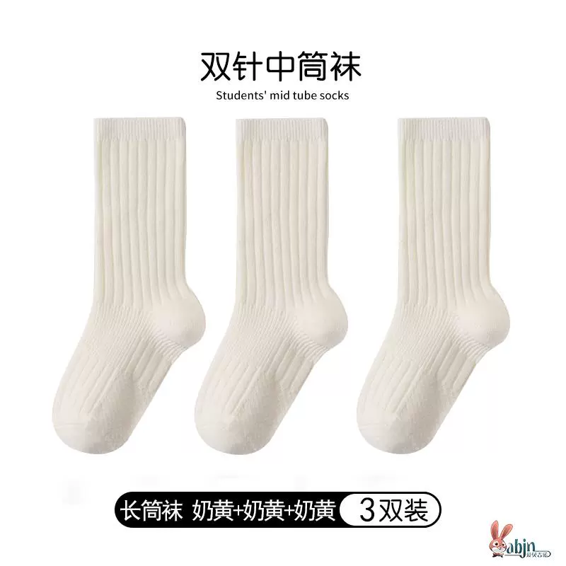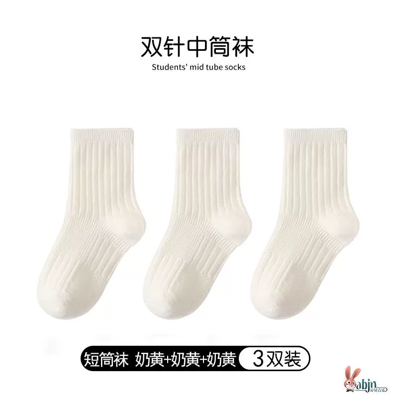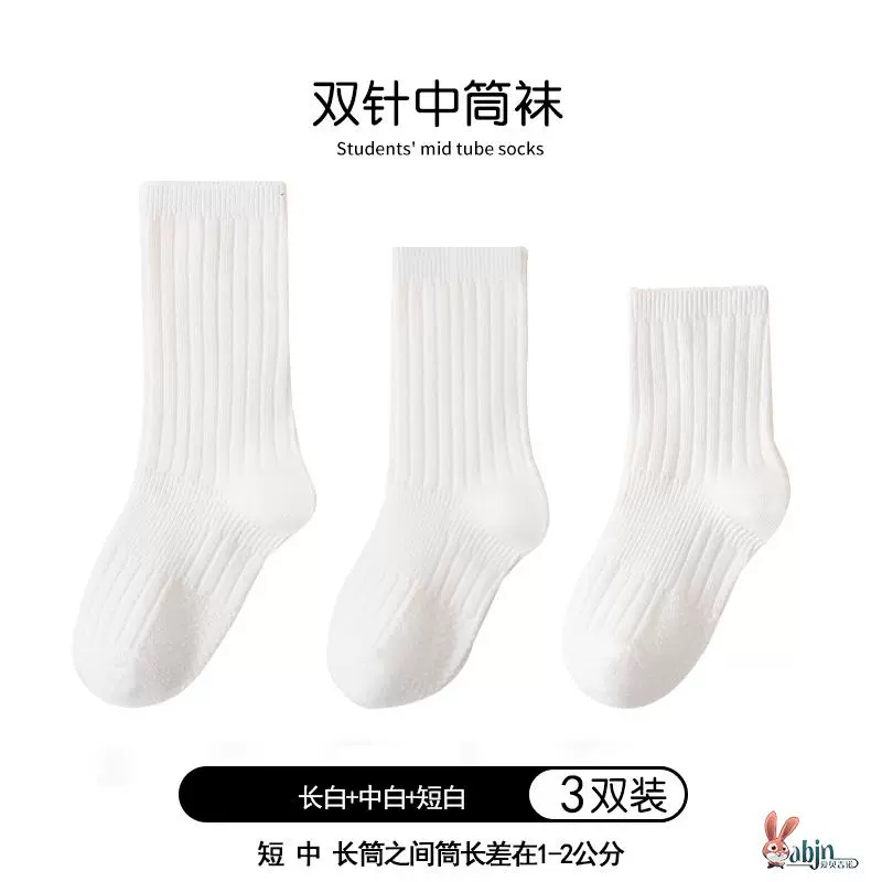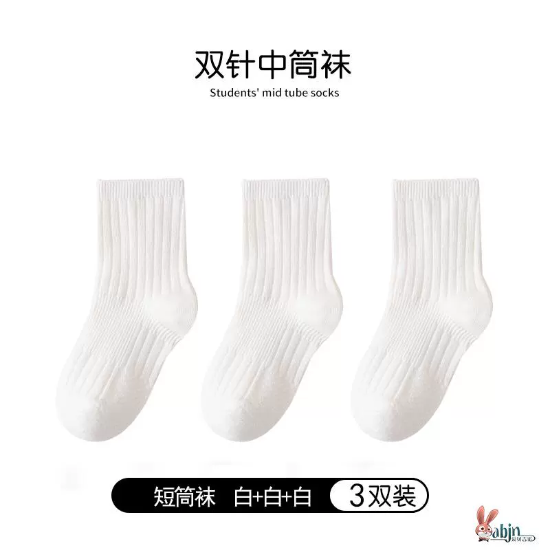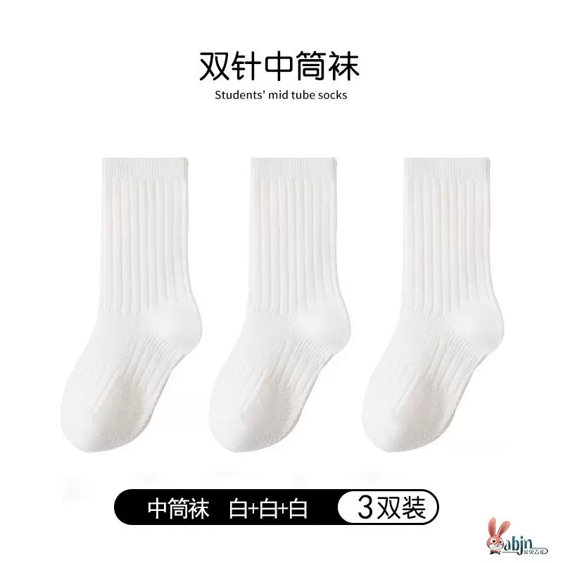 Girls and boys black pure cotton calf socks children’s socks spring and autumn solid color socks mid-calf socks white socks baby cotton socks