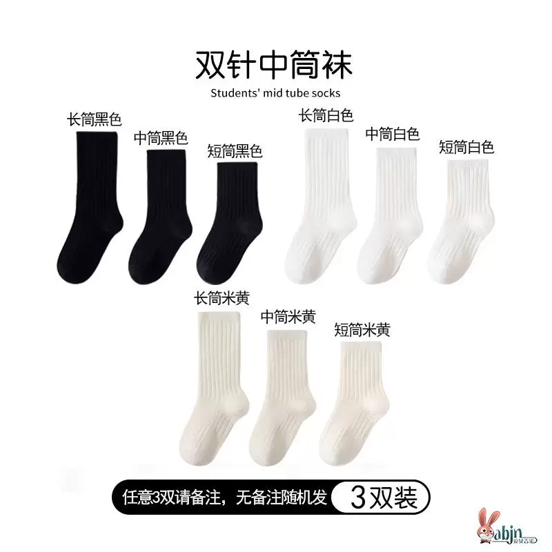 Girls and boys black pure cotton calf socks children's socks spring and autumn solid color socks mid-calf socks white socks baby cotton socks