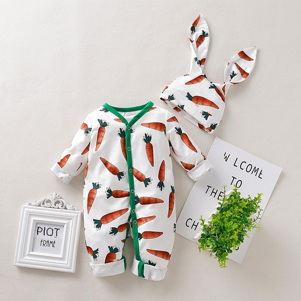 Girls and Children's European and American Spring and Autumn Easter Radish One-Piece Clothes Climbing Clothes Hare Hats Rabbit Ears Hat Two-Piece Children's Clothing