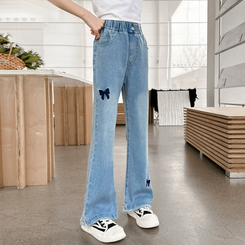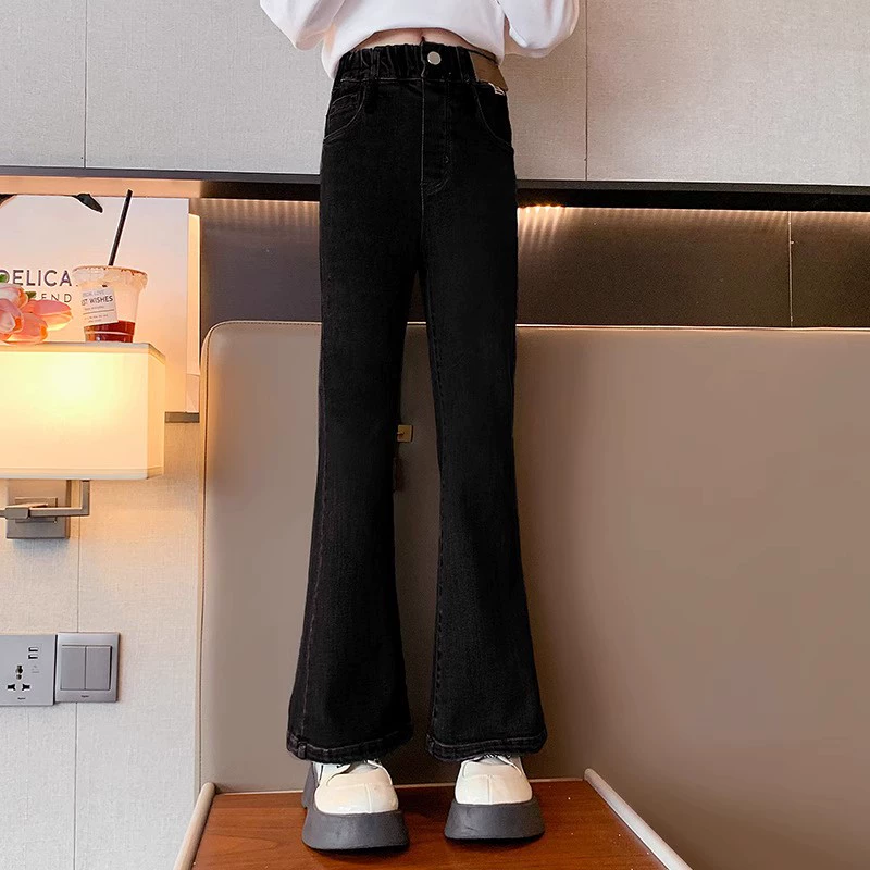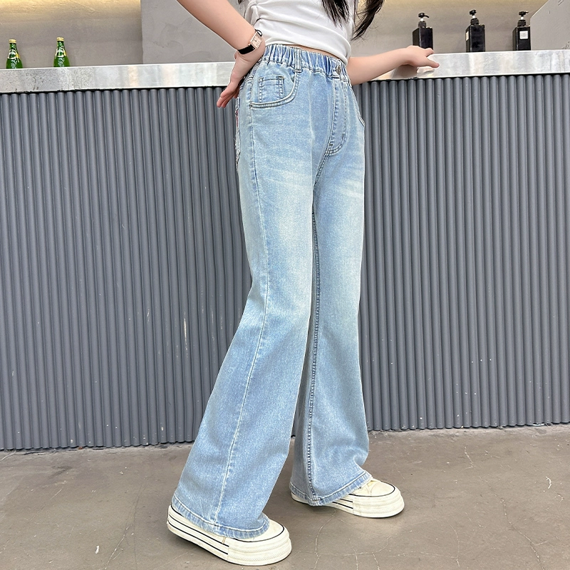 Girls and older children's autumn jeans with slightly raised outer wear