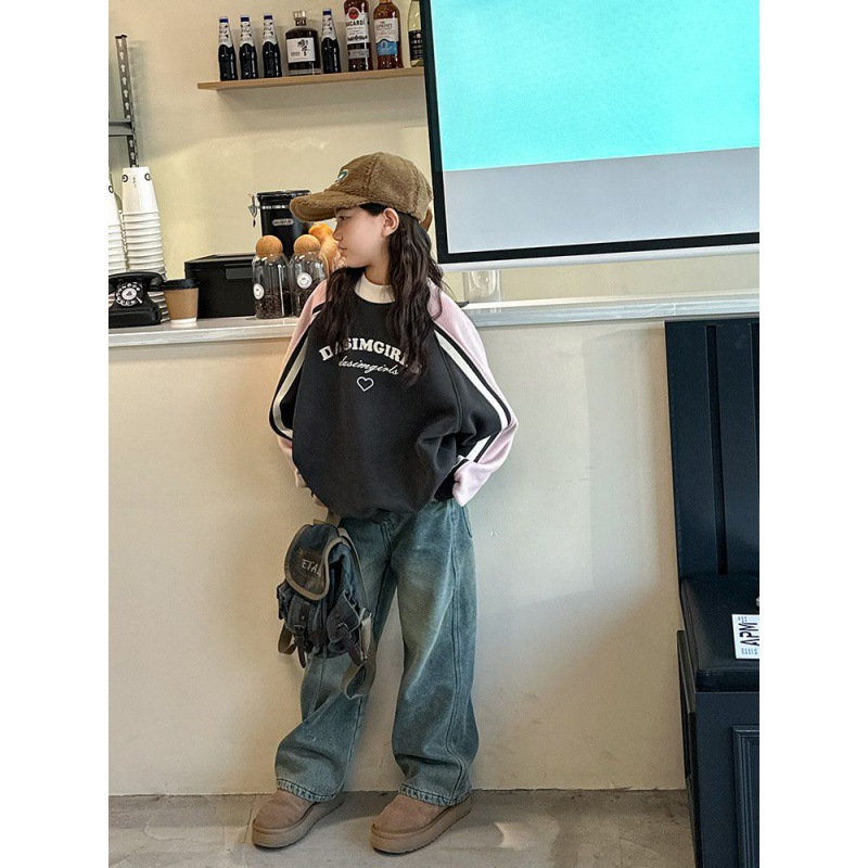 | nameOriginal | Girls' Autumn and Winter Fleece-lined Thickened Sweater New Children's Korean-style Winter Middle and Large Children's One-piece Fleece Contrast Top |