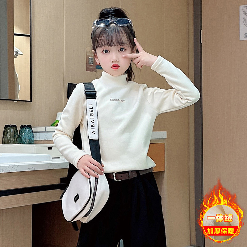| nameOriginal | Girls' autumn and winter half turtleneck fleece-lined bottoming shirt 2023 new medium and big children all-match pullover winter inner T-shirt |