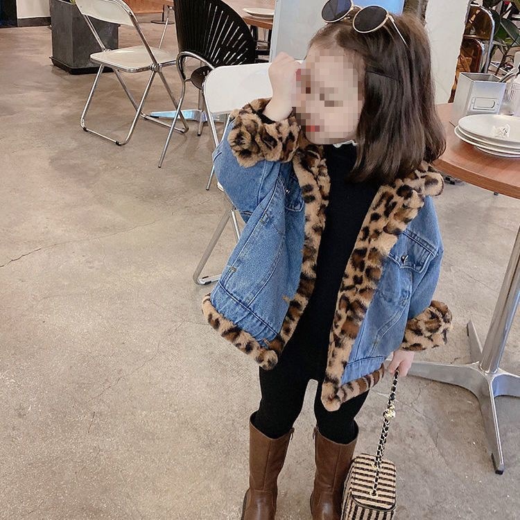 | nameOriginal | Girls' Autumn and Winter New Western Style Children's Baby Thickened Two-sided Leopard Print Denim Coat Imitation Fur Top |