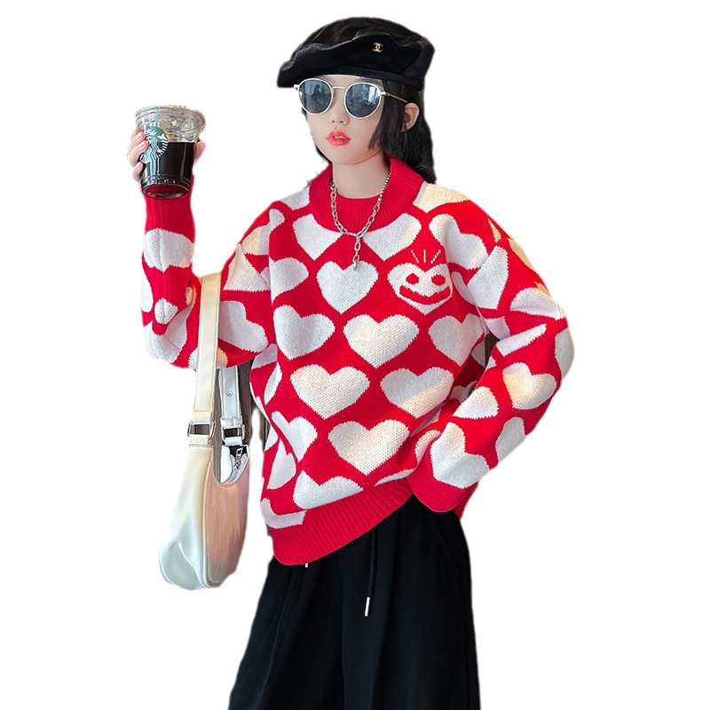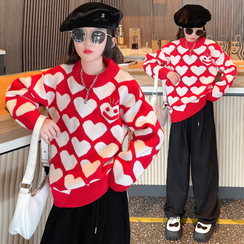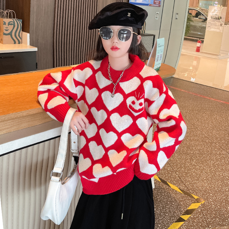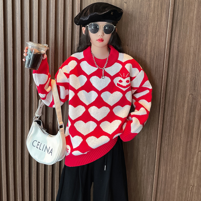 | nameOriginal | Girls' autumn and winter sweater 2023 new sweet pullover sweater medium and big children sweet western style all-match love sweater |