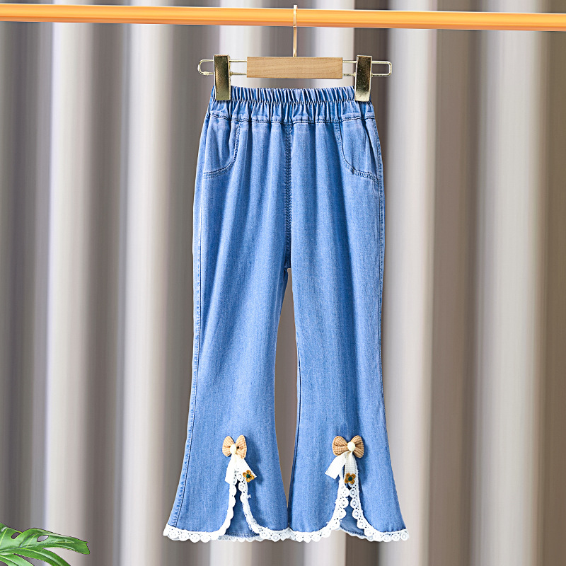 | nameOriginal | Girls' autumn pants outer wear spring and autumn jeans 2024 new micro pants children's split flared pants trousers |