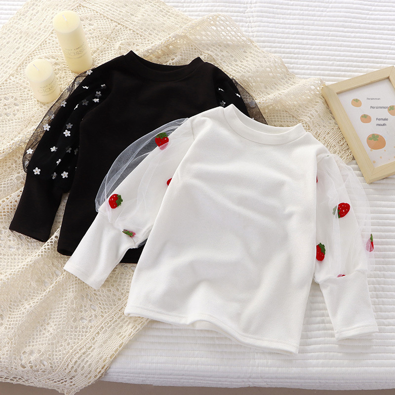 | nameOriginal | Girls' autumn puff sleeve mesh bottoming shirt girls' cute western style all-match round neck school bottoming shirt 2023 New |