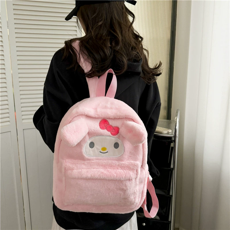 Girls' backpack, plush backpack, practical plush toy bag, casual travel bag, versatile for shopping, large capacity