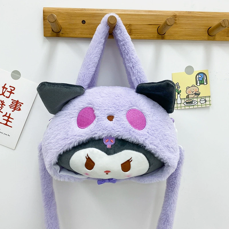 Girls Bags 2024 New Cute Cartoon Plush Toy Bag Kuromi Children's Baby Single Shoulder Messenger Bag Trendy