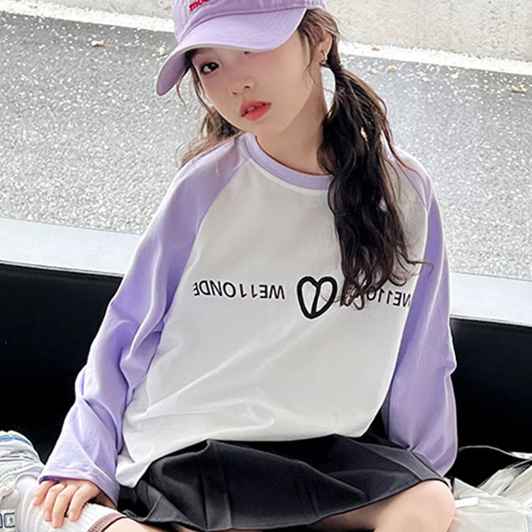 Girls' Base Shirt Western Style Spring and Autumn 2024 New Children's Pure Cotton Top Spring Wear Women's Big Children's Long Sleeve T-shirt for Outer Wear