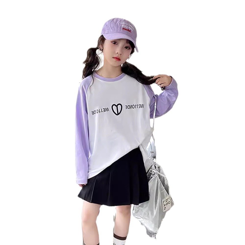Girls’ Base Shirt Western Style Spring and Autumn 2024 New Children’s Pure Cotton Top Spring Wear Women’s Big Children’s Long Sleeve T-shirt for Outer Wear