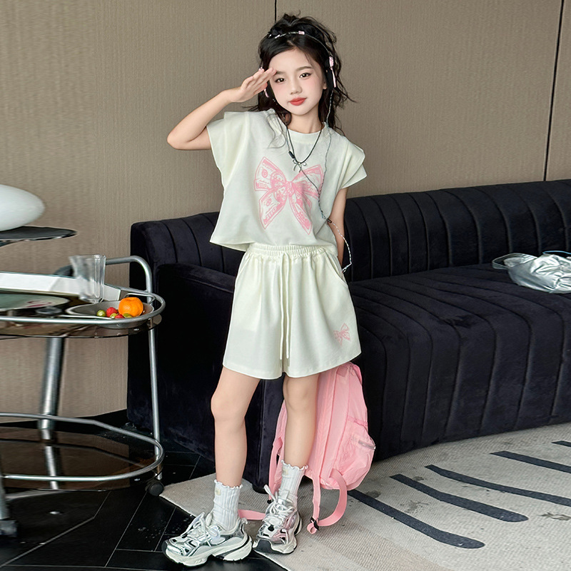 | nameOriginal | Girl's Big Boy's Short-sleeved suit Summer 2024 Internet-famous New Children's Casual T-shirt Shorts Summer Western-style Two-piece Set |