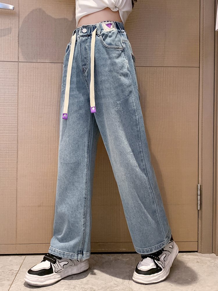 Girl's Big Boy's Wide Leg Jeans Junior High School Students Loose Autumn Soft Spring and Autumn 2023 New Straight Loose Waist