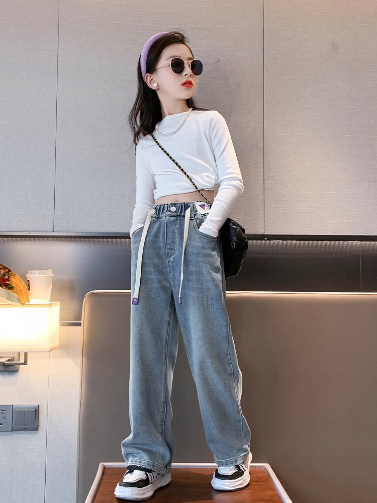 Girl’s Big Boy’s Wide Leg Jeans Junior High School Students Loose Autumn Soft Spring and Autumn 2023 New Straight Loose Waist