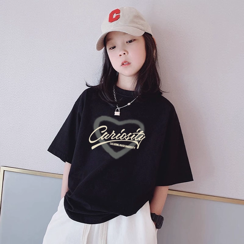 | nameOriginal | Girls black short-sleeved t-shirt 2024 summer new Korean style medium and large children loose and foreign style pure cotton half-sleeved top trendy |