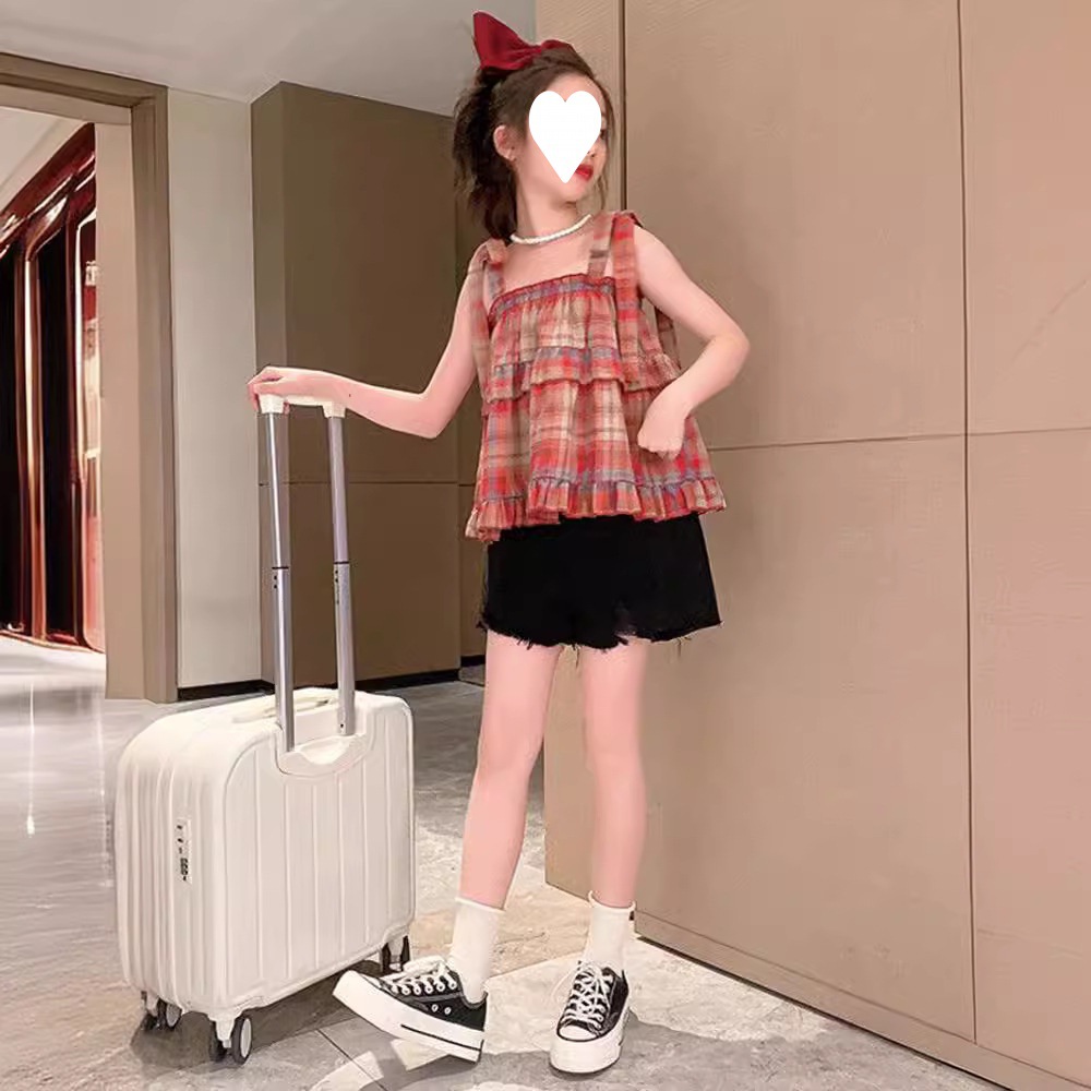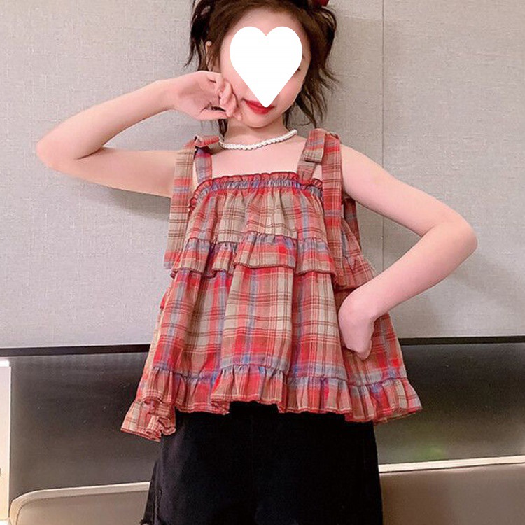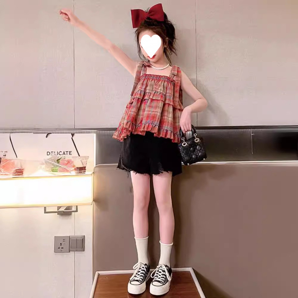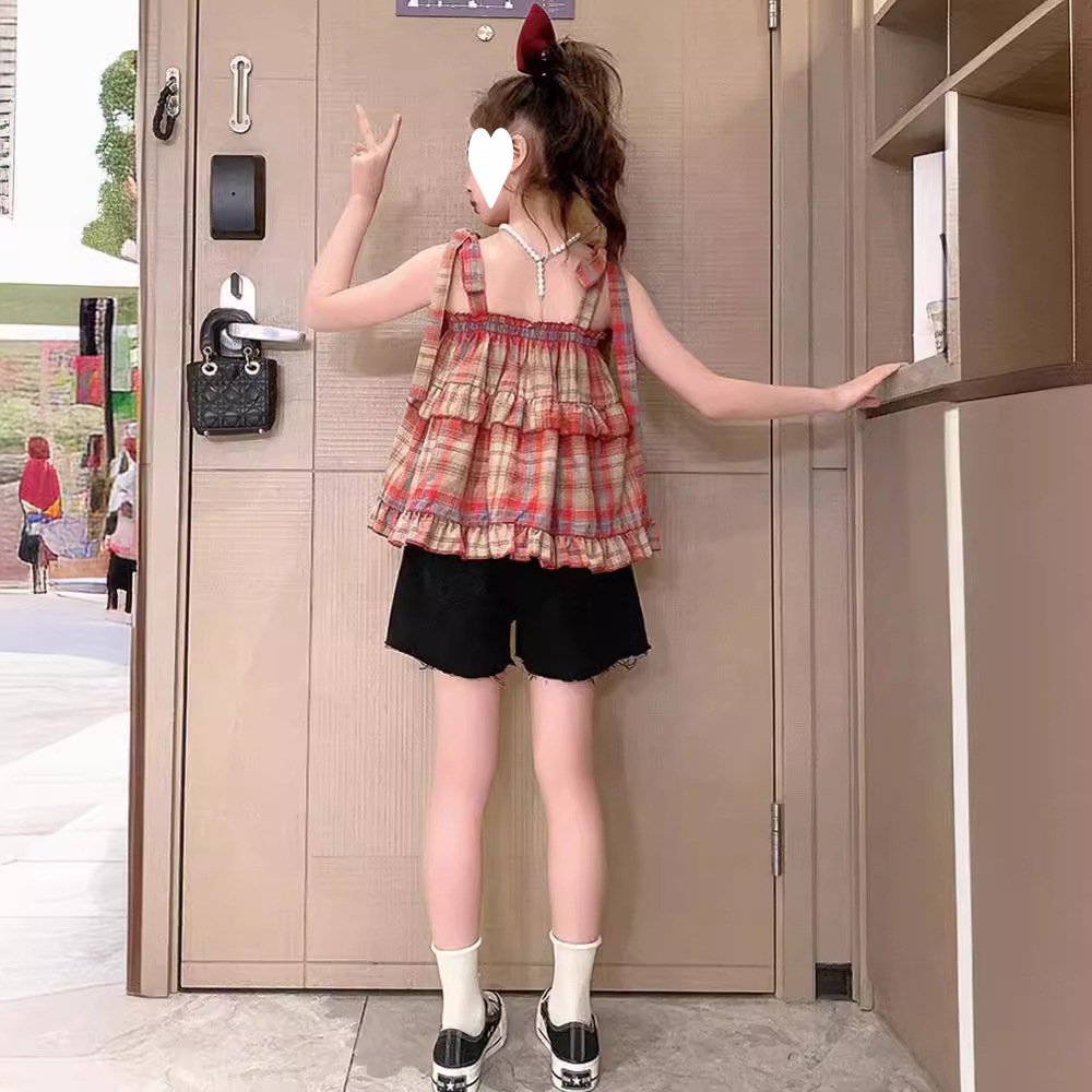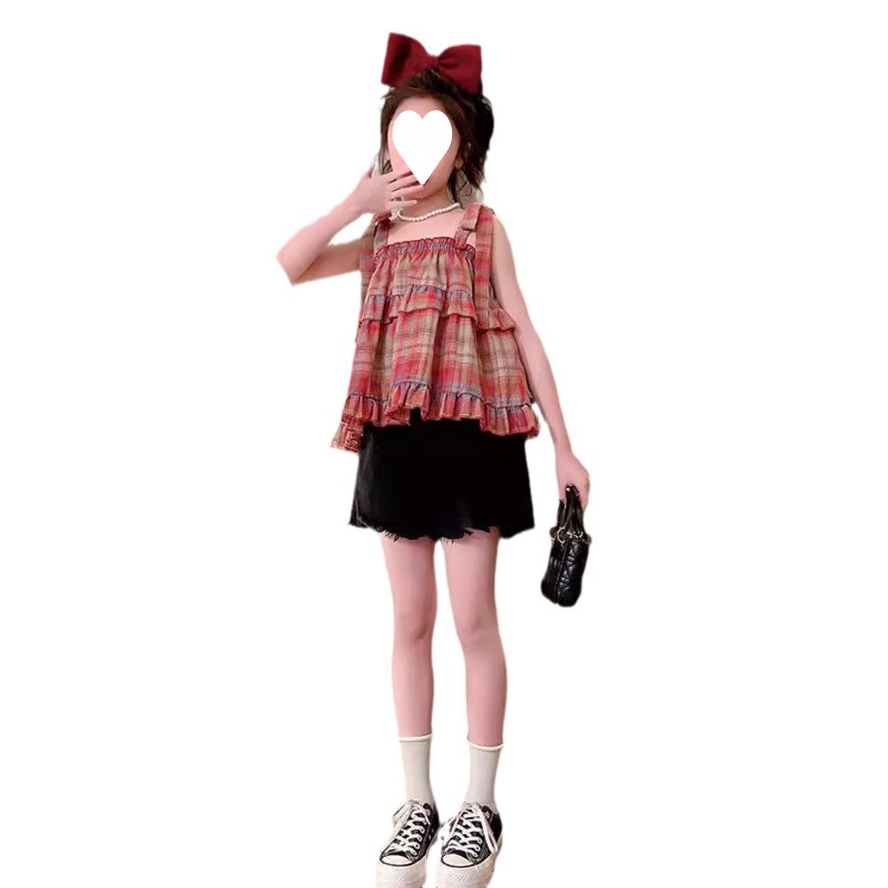 | nameOriginal | Girls' Camisole Top Summer 2024 New Style Middle and Big Kids Fashion Ins Sleeveless Vest Doll Shirt Baby Plaid |