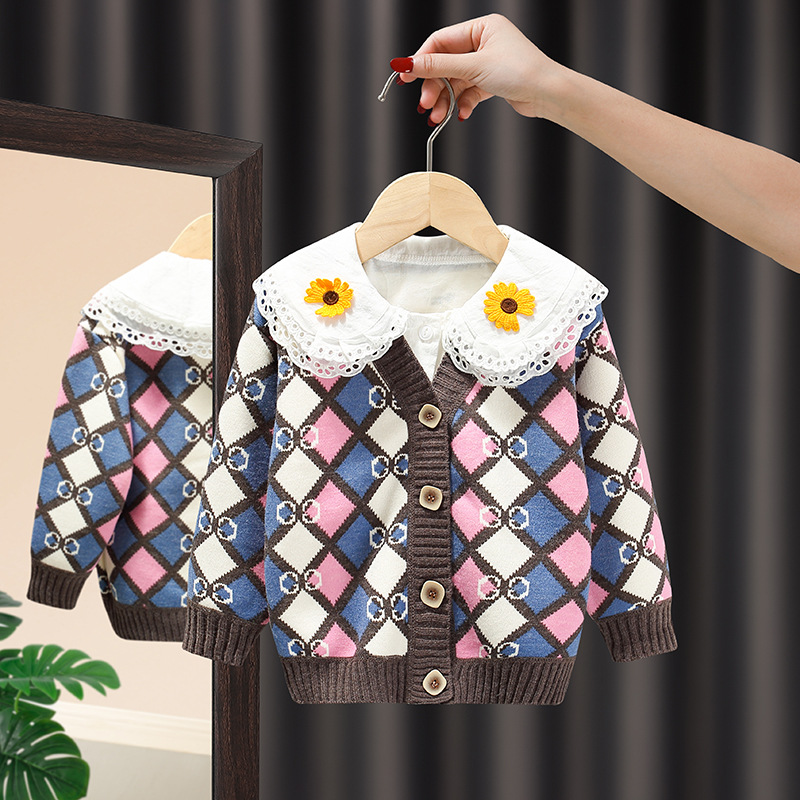 | nameOriginal | Girls' Cardigan Coat 2023 Spring and Autumn New Children's Western Style Top Autumn Knitted Shirt Baby Sweater Trendy |