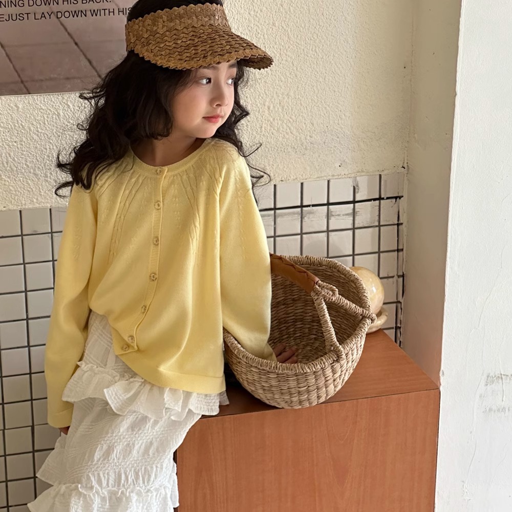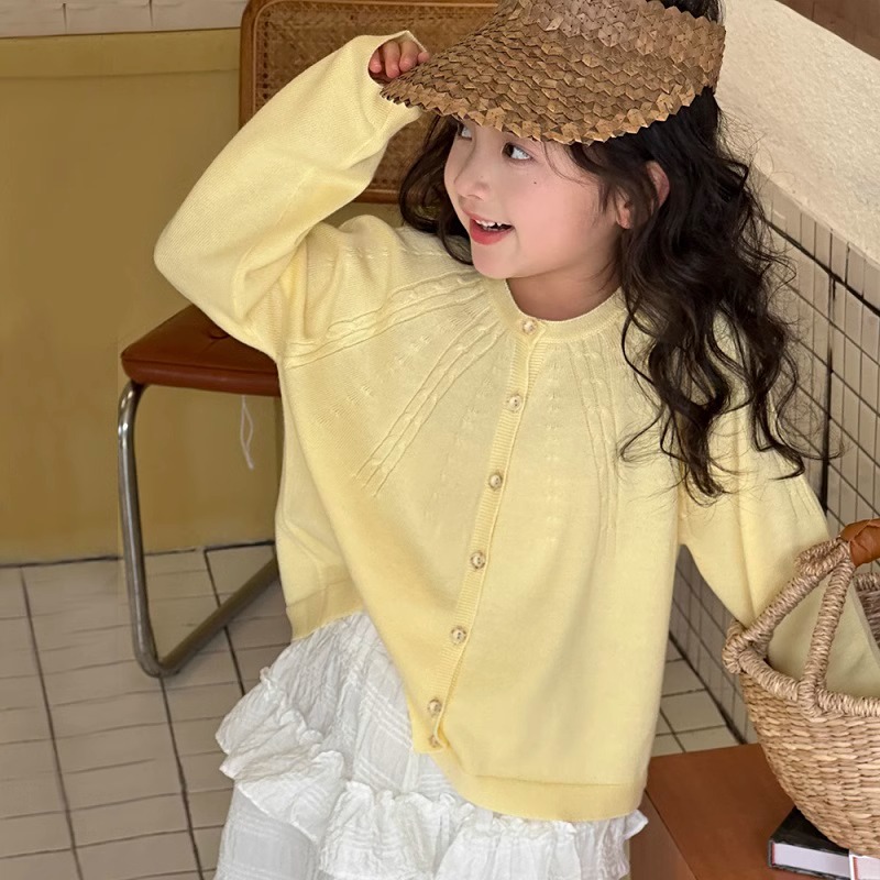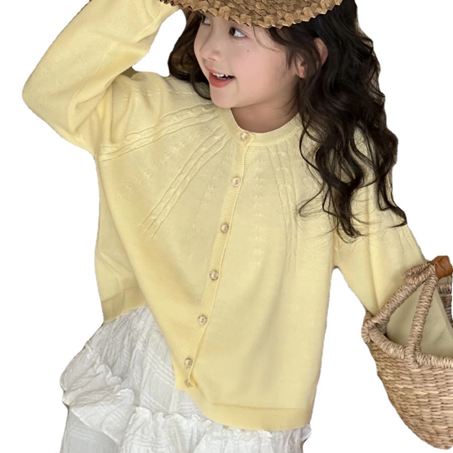 Girls' cardigan coat spring and autumn 2024 new big children's knitwear Western style spring clothes children's long sleeve thin top