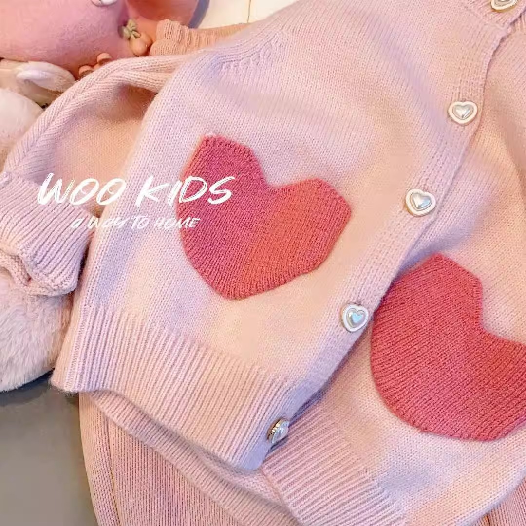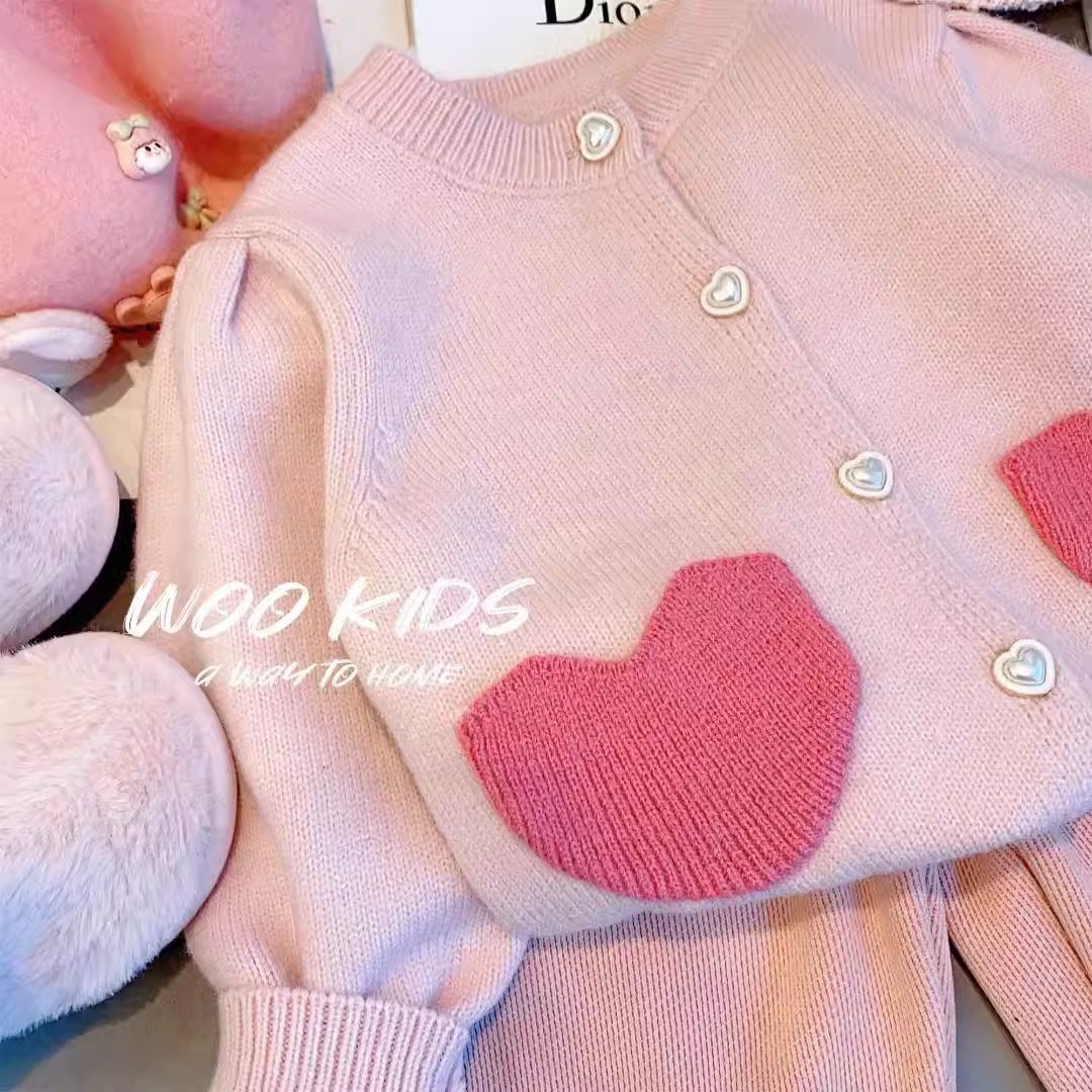 | nameOriginal | Girls' cardigan sweater coat 2023 Autumn New Korean style children's clothing Western style sweet children's pink Love Sweater |