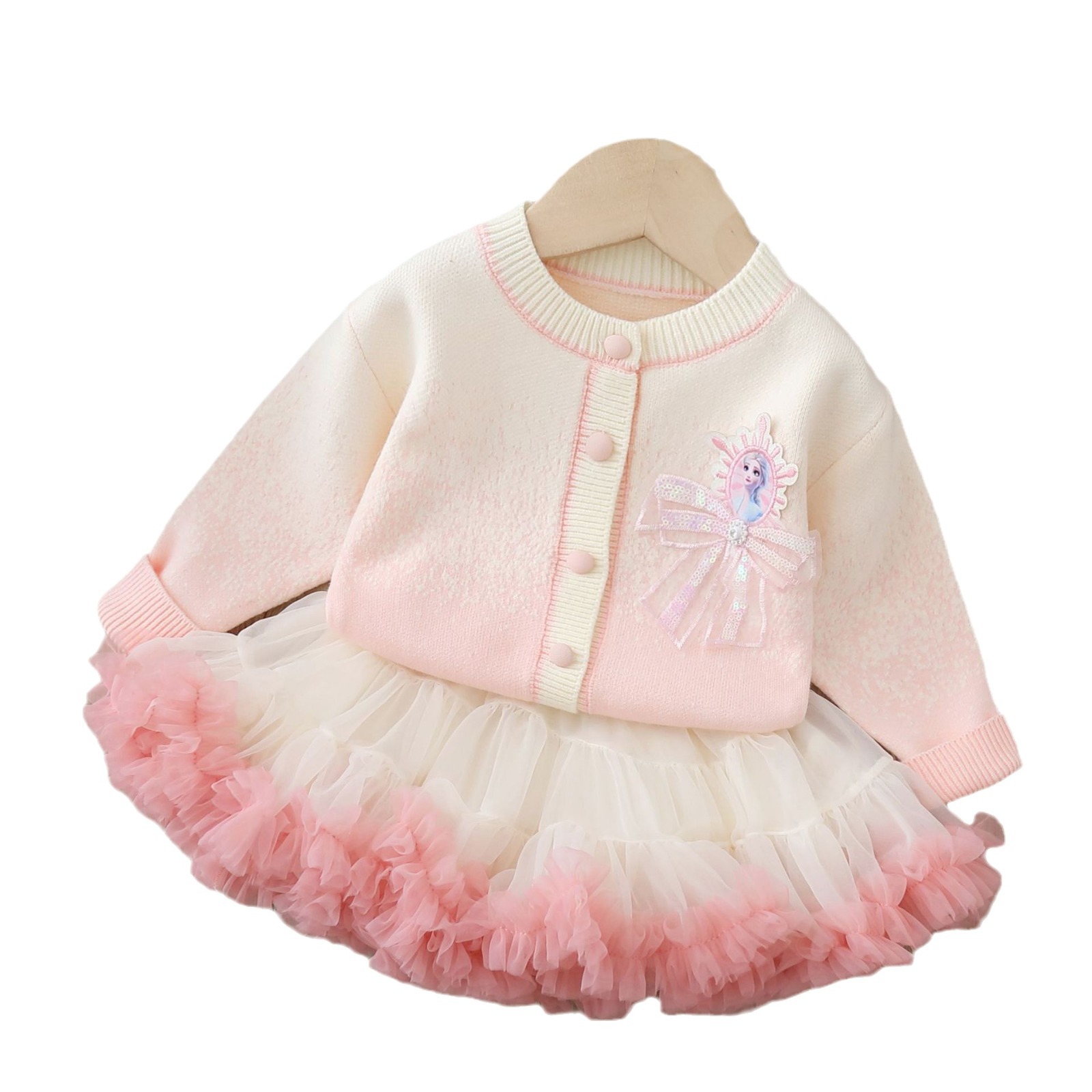 | nameOriginal | Girls' Cardigan Sweater Love Yarn Princess Group Two-Piece Tutu Skirt Autumn and Winter New Korean Style Knitted Cardigan for Baby Girls |