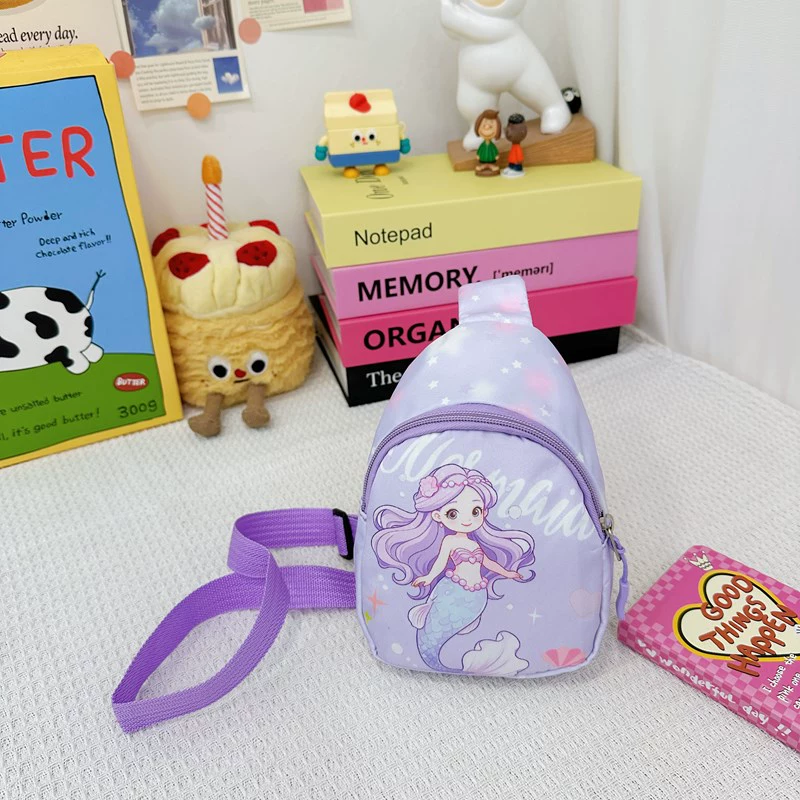 Girls Cartoon Kurome Chest Bag Little Girl Cute Mermaid Casual Crossbody Bag Boys and Girls Travel Backpack