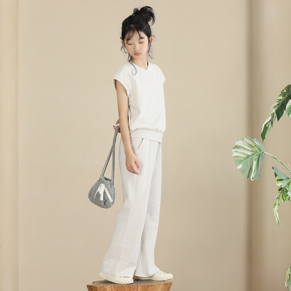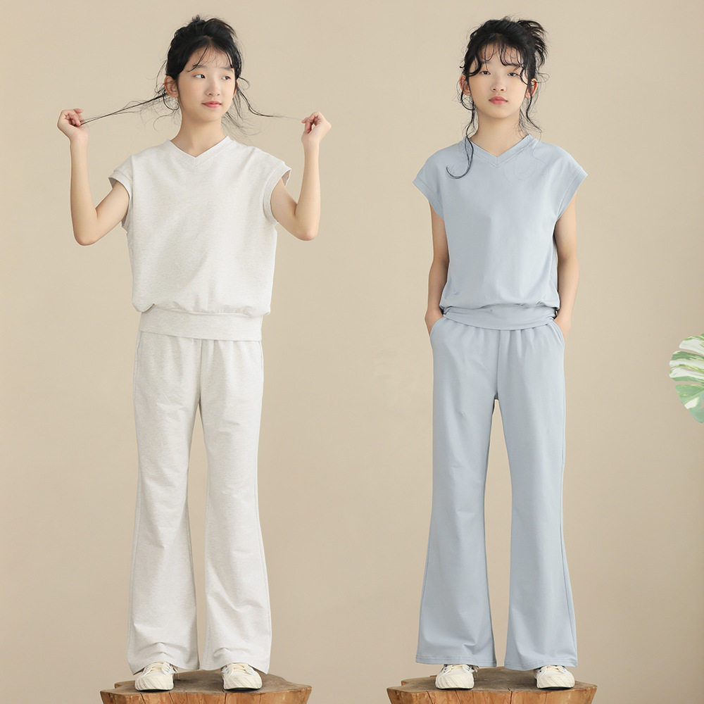 | nameOriginal | Girls' Casual Suit Summer 2024 New Stretch Sports Casual Straight Pants Large Children's Simple Solid Color Suit Trendy |