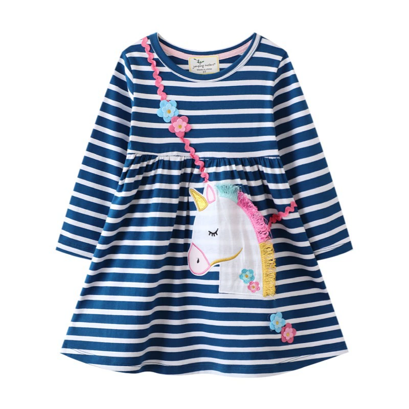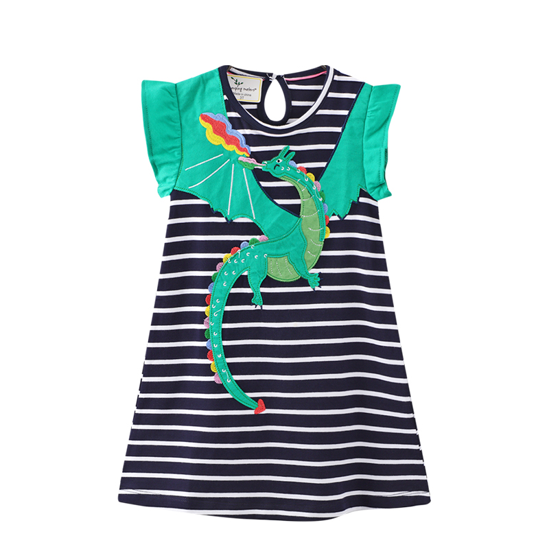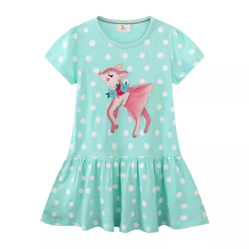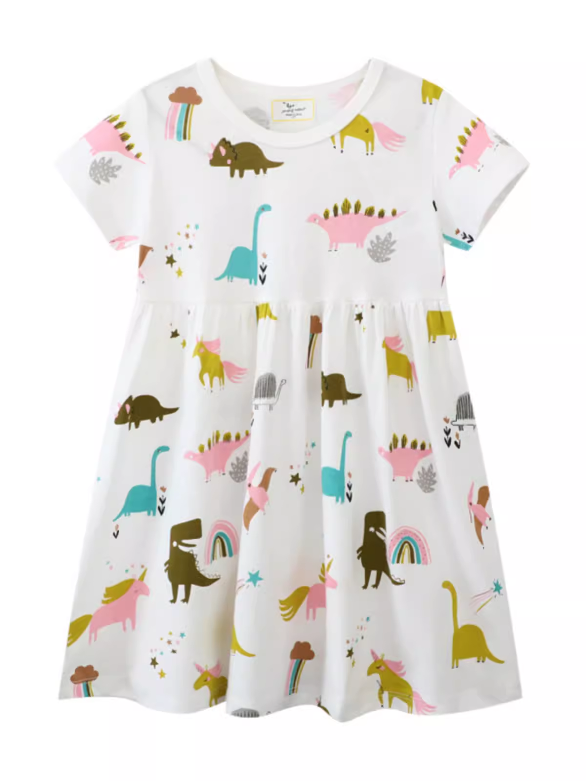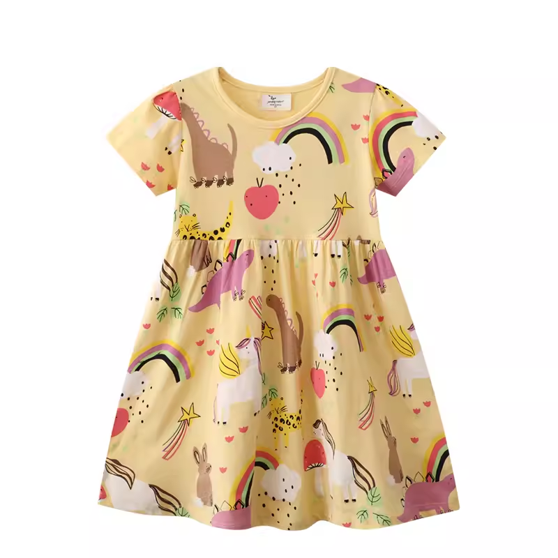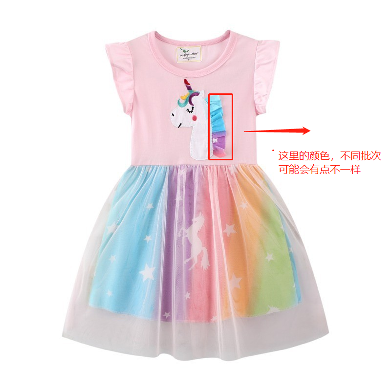Girls flying shoulder casual unicorn short -sleeved dress