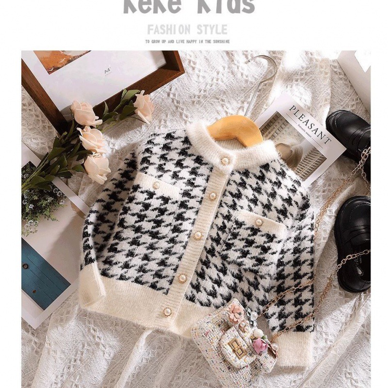 | nameOriginal | Girls Chanel Style Coat 2023 Spring Autumn Winter New Knitted Cardigan Houndstooth Mink Velvet Sweater Loose |