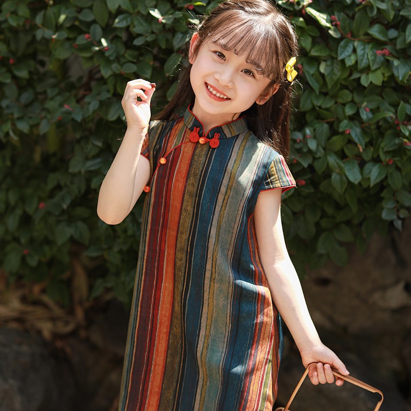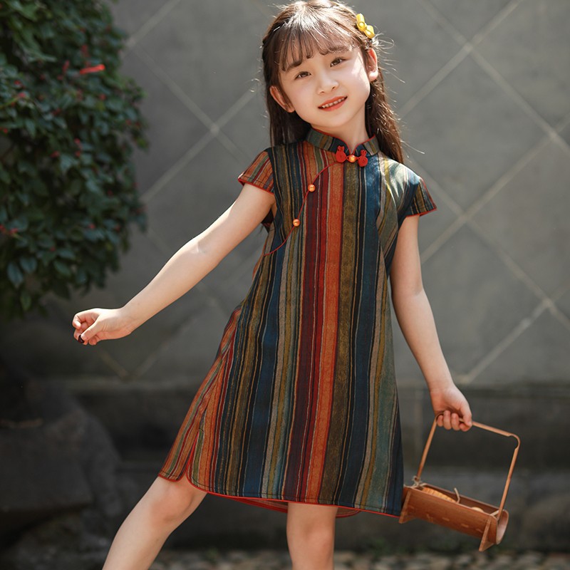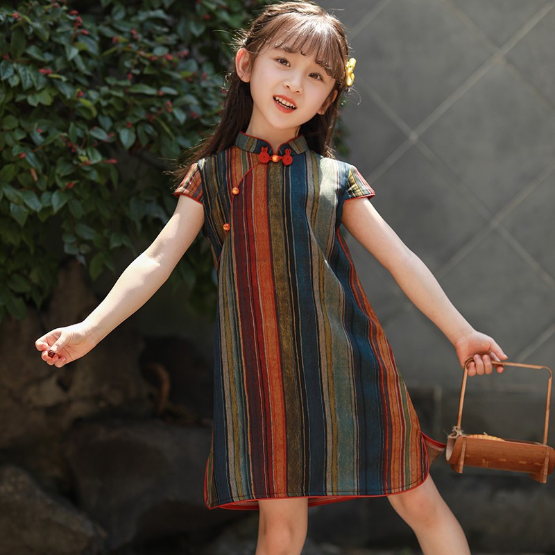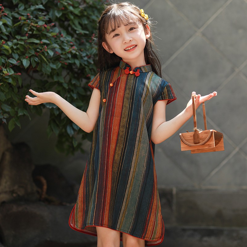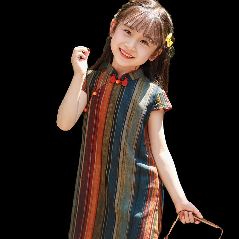 Girls Cheongsam 2024 New Summer Thin Chinese Style Dress Retro Improved Children's Hanfu Cheongsam Dress