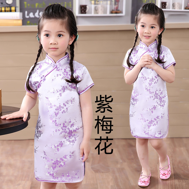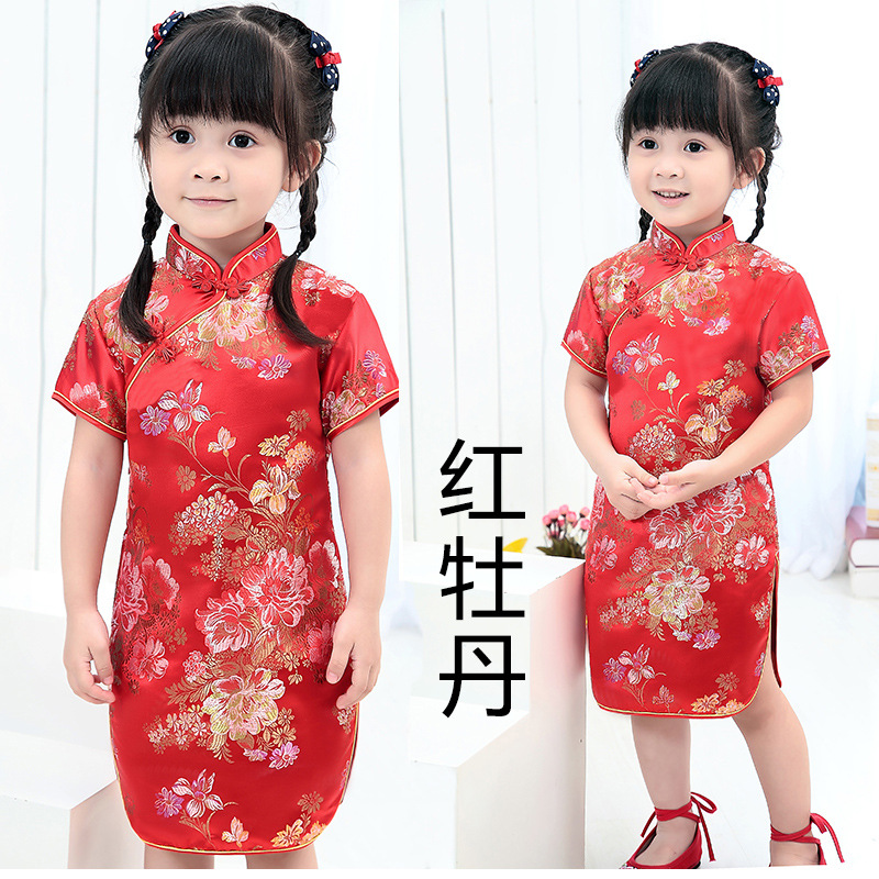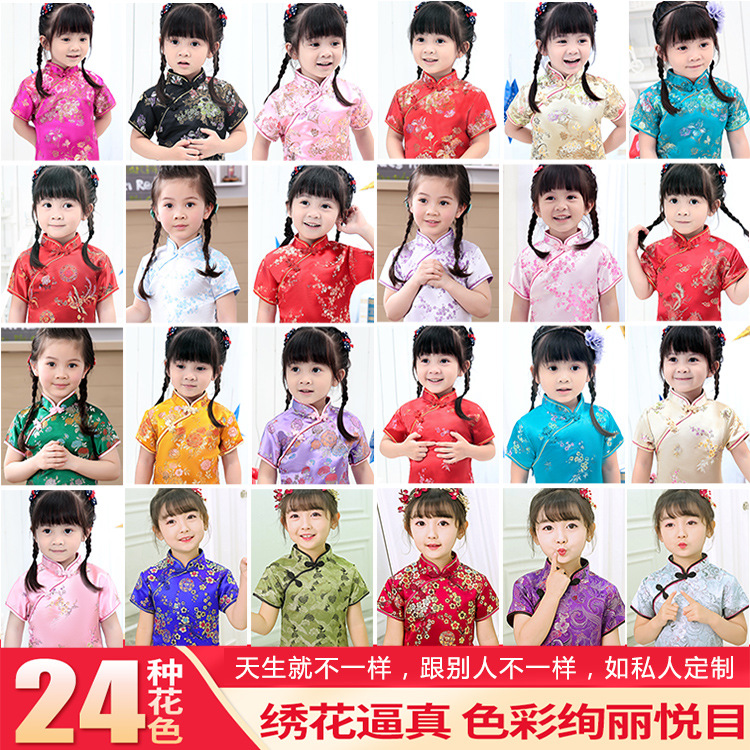 Girls’ Cheongsam Summer Dress Chinese Style Big Children’s Tang Suit Children’s Performance Dress Chinese Foreign Trade Children’s Cheongsam