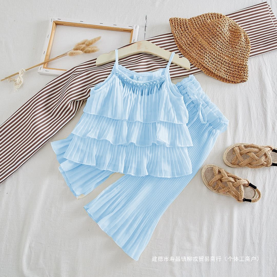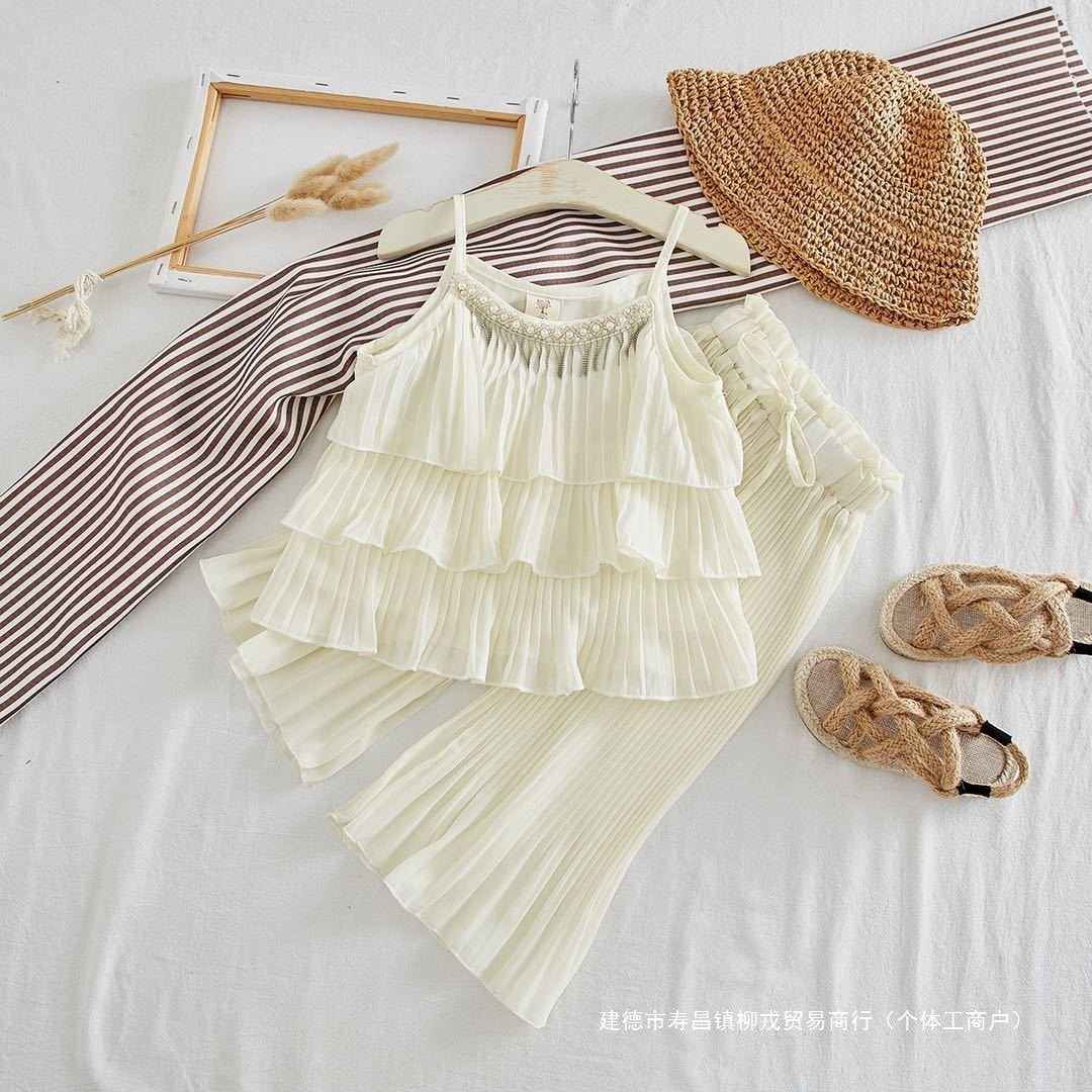 | nameOriginal | Girls' chiffon sling wide-leg pants suit summer new Korean style fashionable fashionable fashionable fashionable two-piece suit |