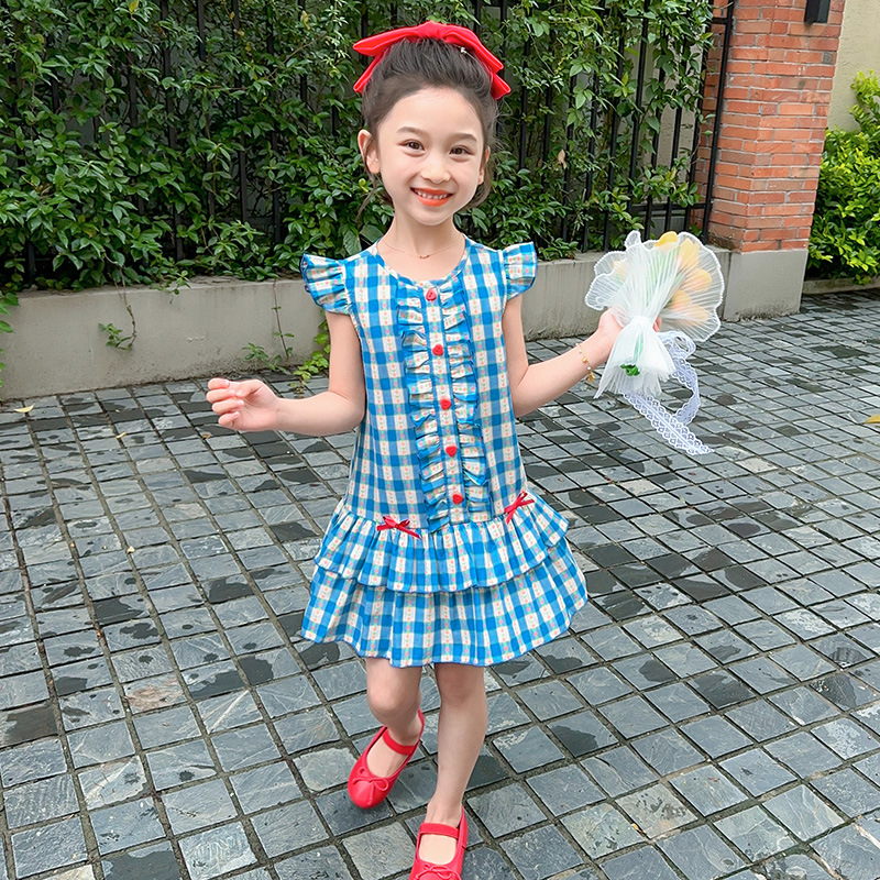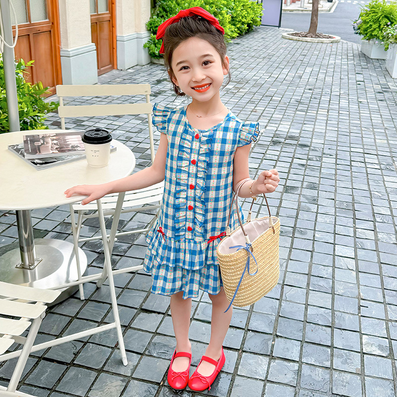 | nameOriginal | Girl's Children's Plaid dress 2024 Summer New Little Girl's Sweet Bow Flying Sleeve Fashionable Princess Skirt |
