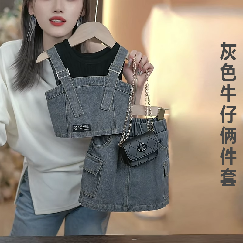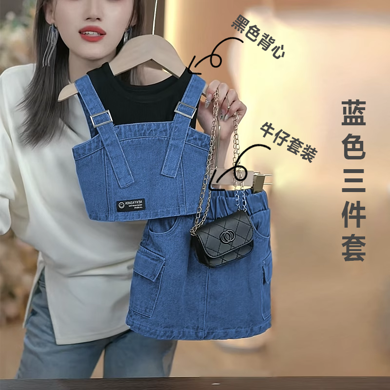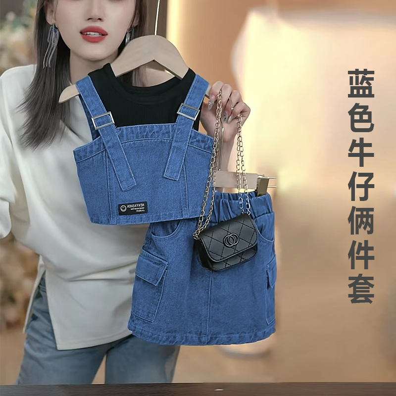 | nameOriginal | Girls' clothing fashionable western suit 2024 new children's Korean style little girl's summer denim skirt summer suit skirt |