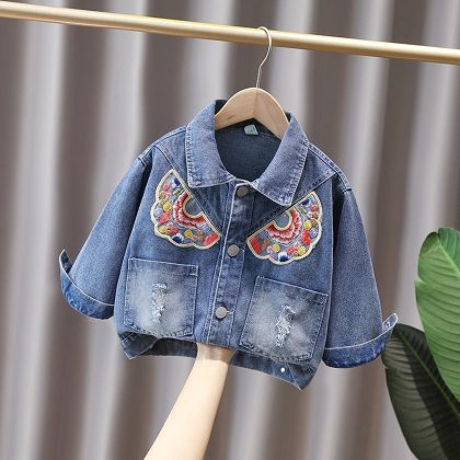 nameOriginal | Girls' Coat 2024 New Internet Popular Foreign Style Children's Fashionable Denim Top Spring and Autumn Embroidered Spring Dress for Baby Girls |