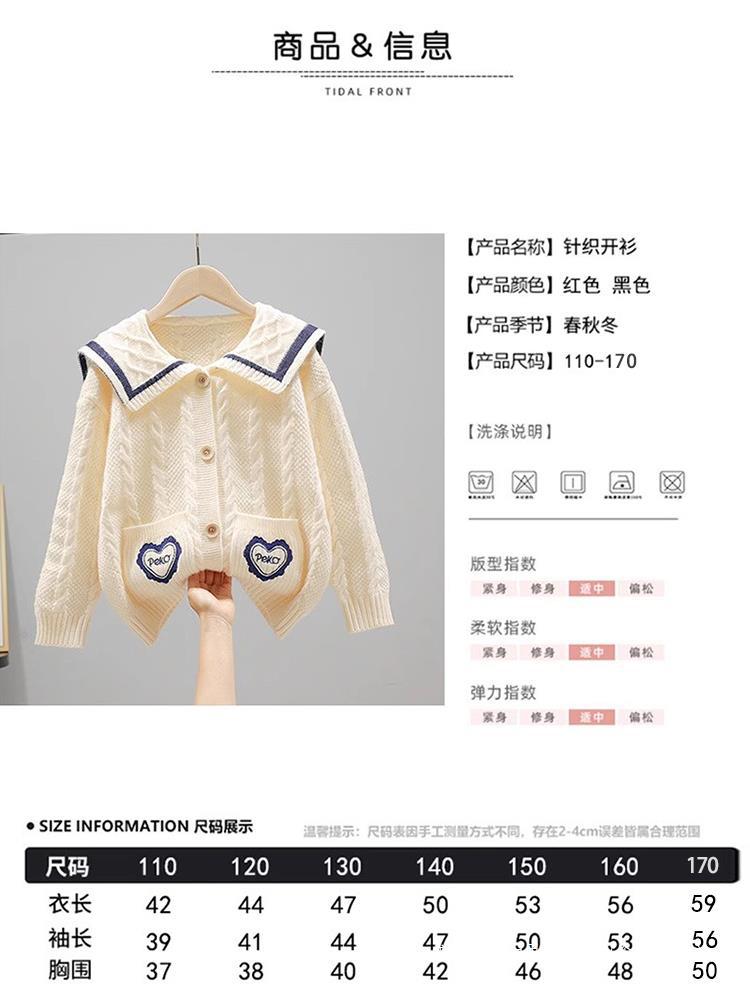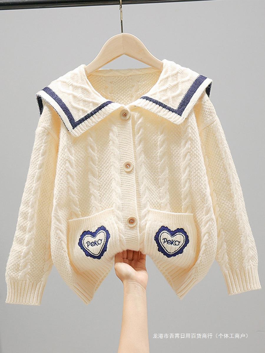 Girls’ coat Spring and Autumn 2023 new autumn children’s cardigan sweater college style big children’s knitted top autumn and winter