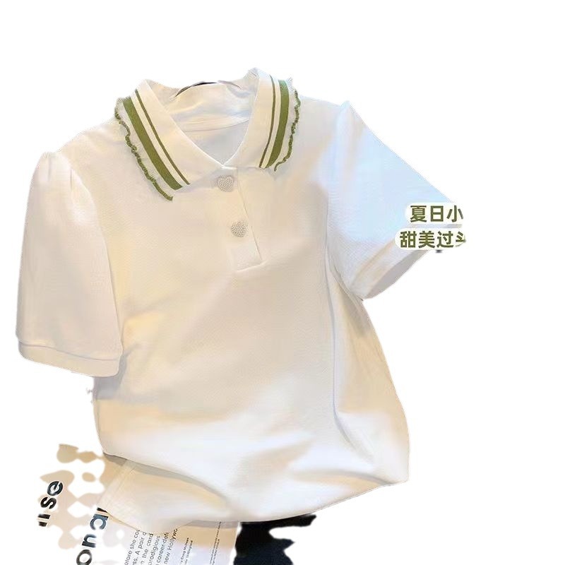 | nameOriginal | Girls' College Style POLO Collar Short-sleeved T-shirt 2024 Summer New Loose Fashionable All-match Sweet Lapel Top |