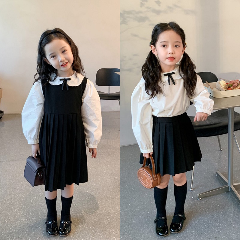 | nameOriginal | Girls' college style suit 2024 spring new children's Korean version of doll collar shirt jk vest skirt two-piece set |