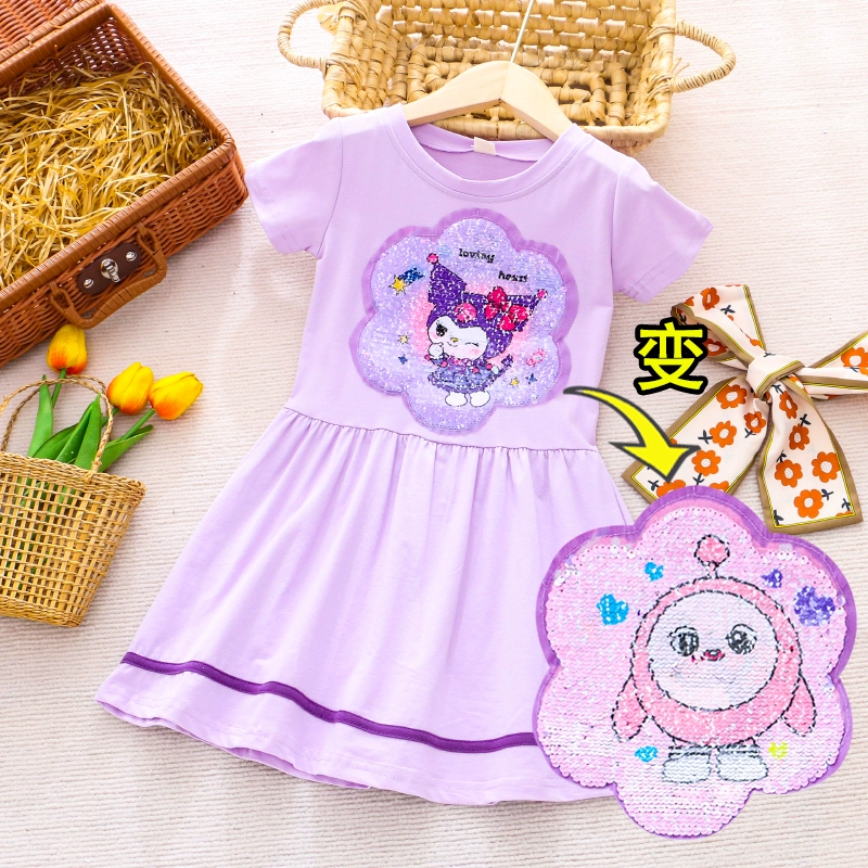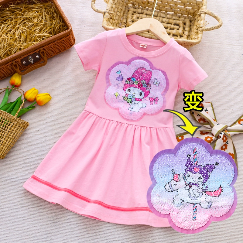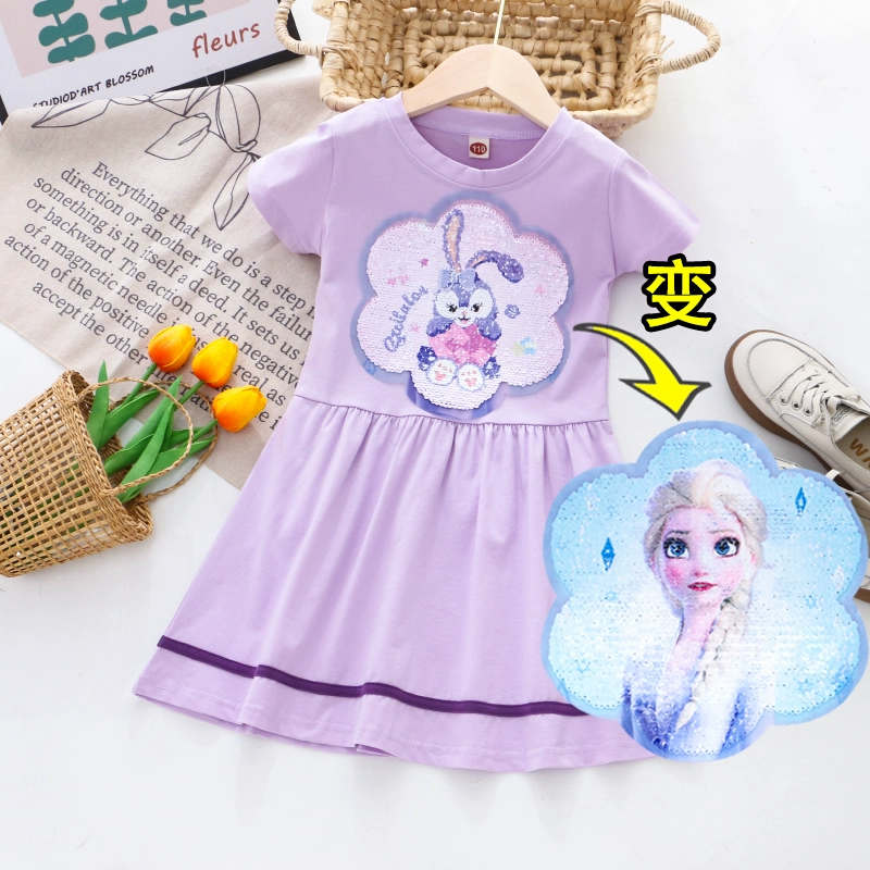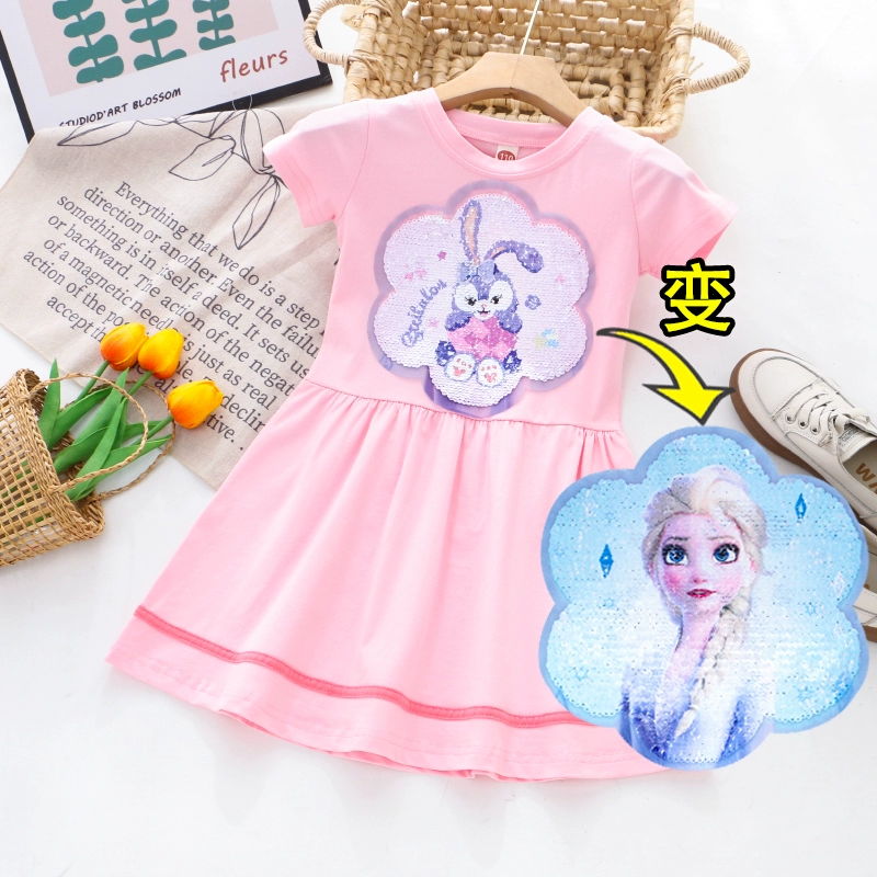 | nameOriginal | Girls Color Changing Sequin Cartoon Summer Short Sleeve Dress |