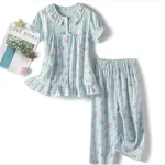 | nameOriginal | Girls' cotton double-layer gauze pajamas spring, summer and autumn pure cotton children's and women's home clothes parent-child living clothes set |