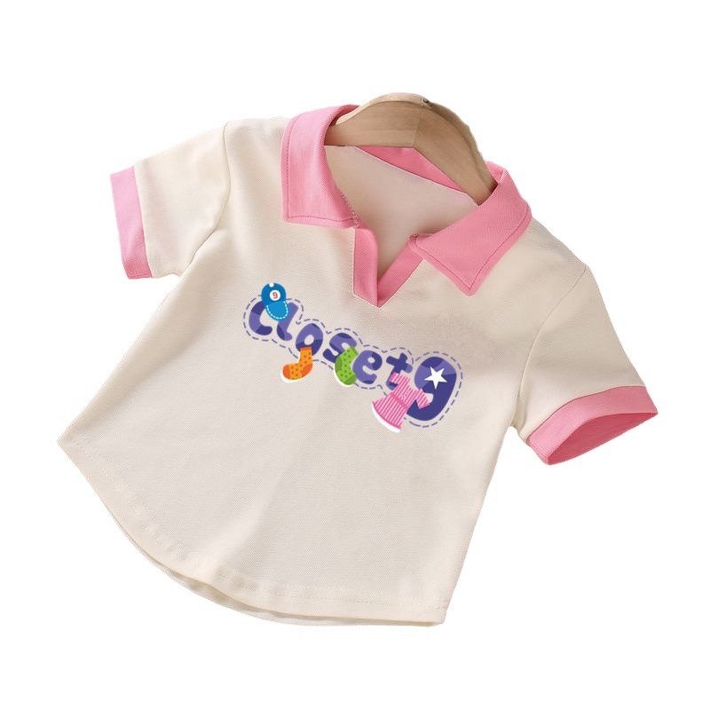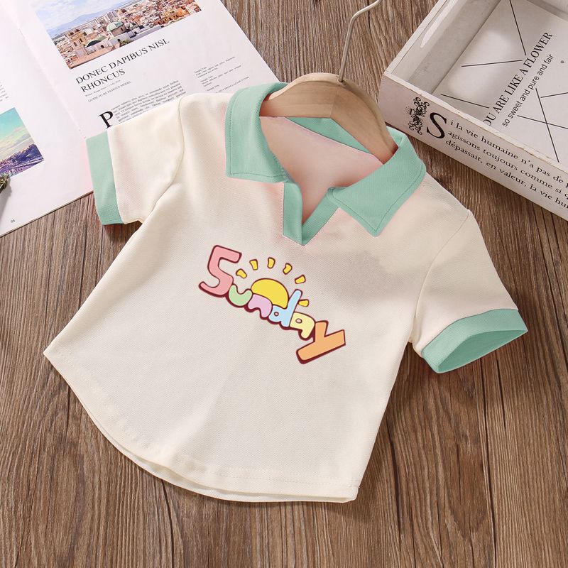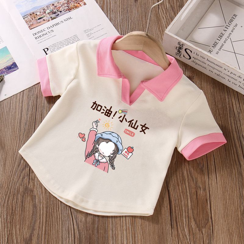 | nameOriginal | Girls' Cotton Short-sleeved T-shirt 2024 Summer New Polo Collar Top Children's Western Style Collar Contrast Color Suction Sweater |