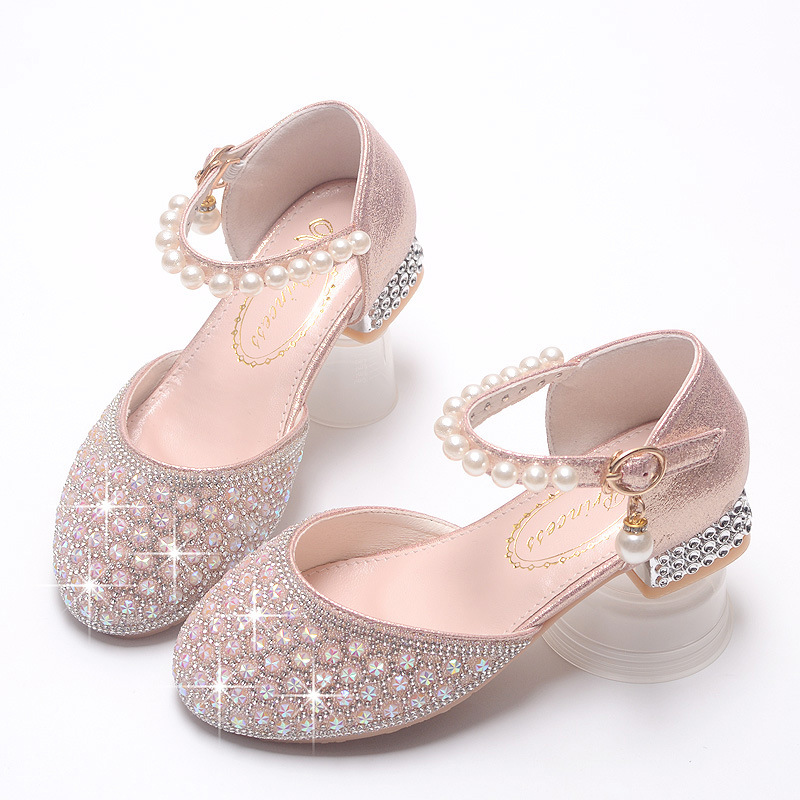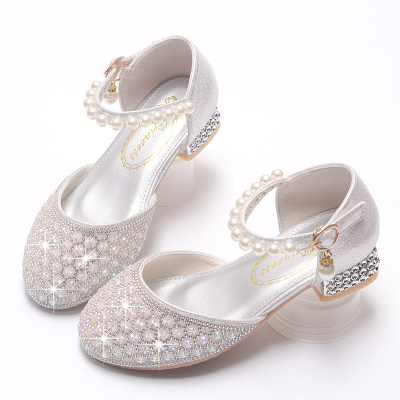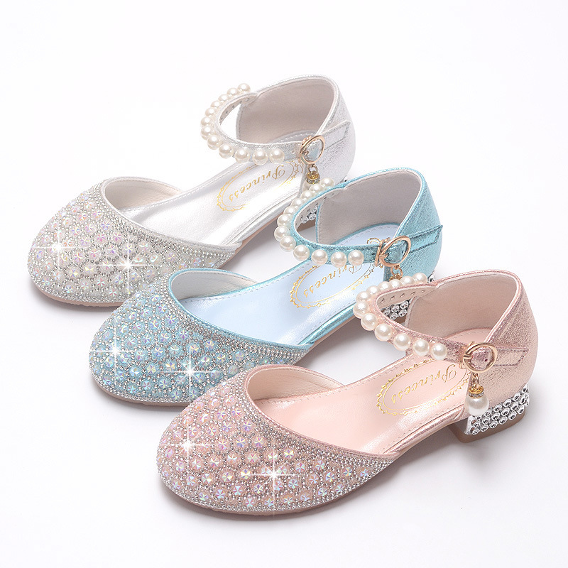 | nameOriginal | Girls crystal shoes Spring and Autumn new blue princess shoes shiny small high heels foreign style soft sole shoes a generation of hair |