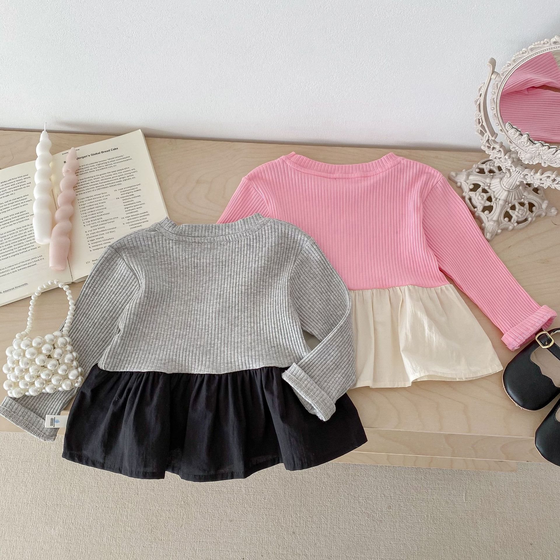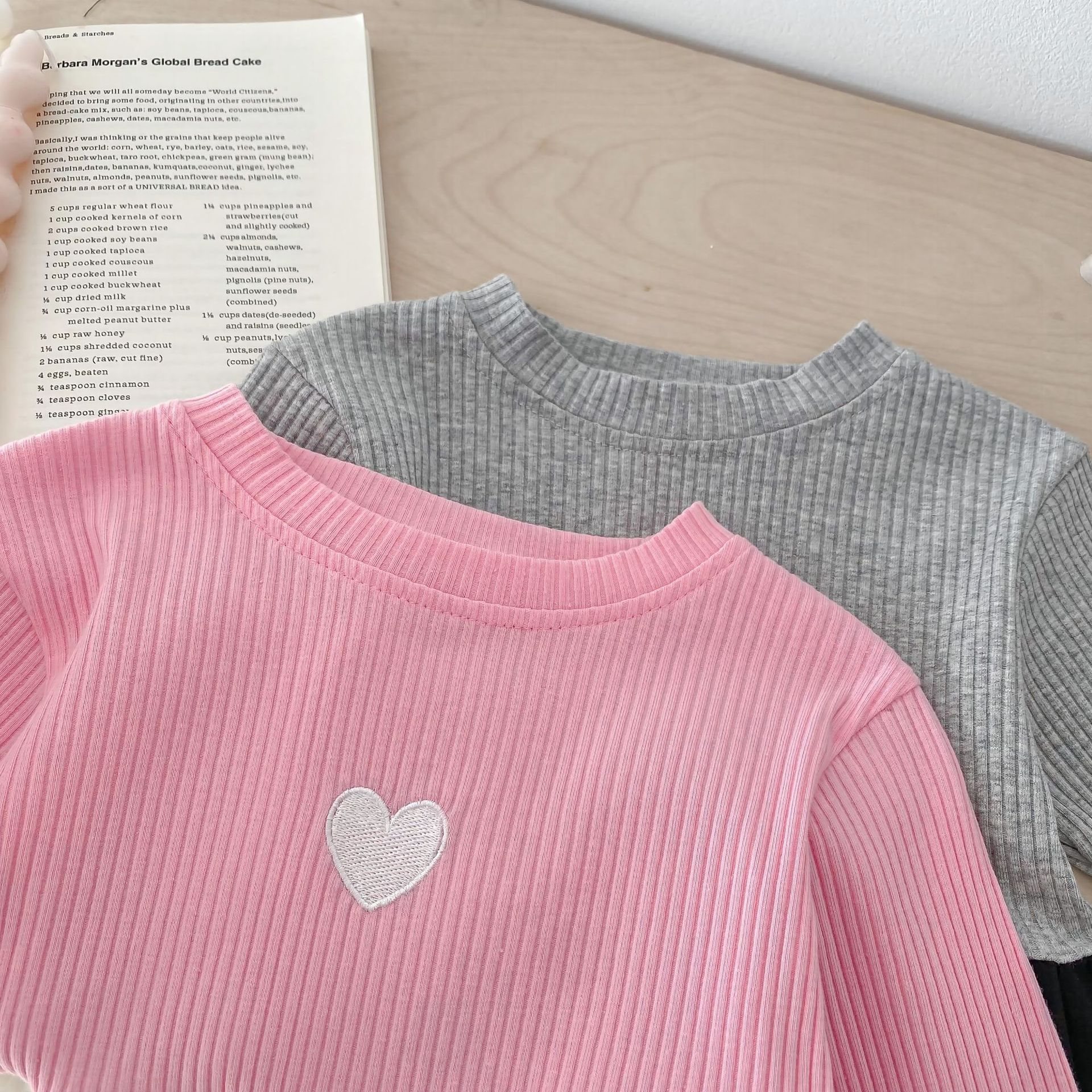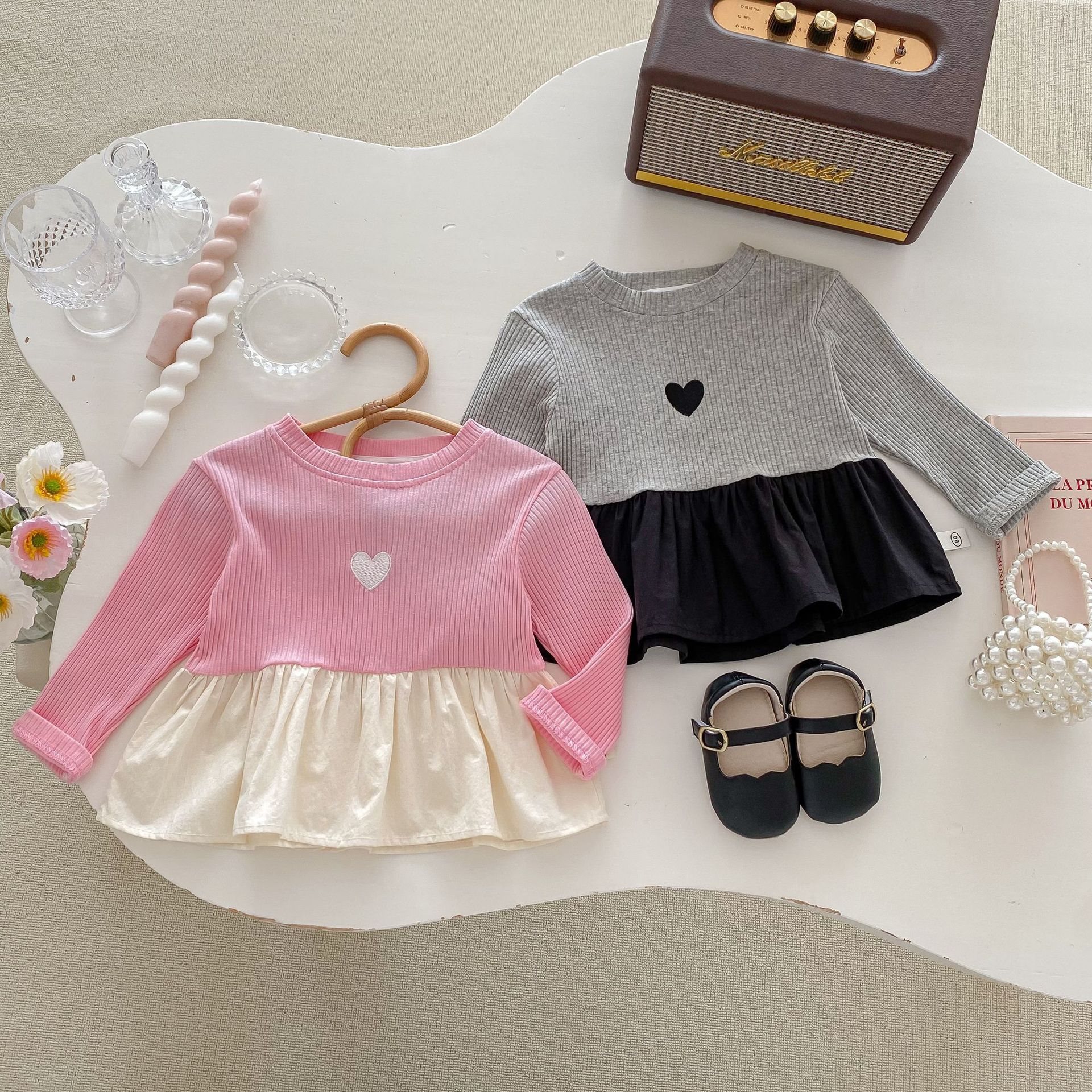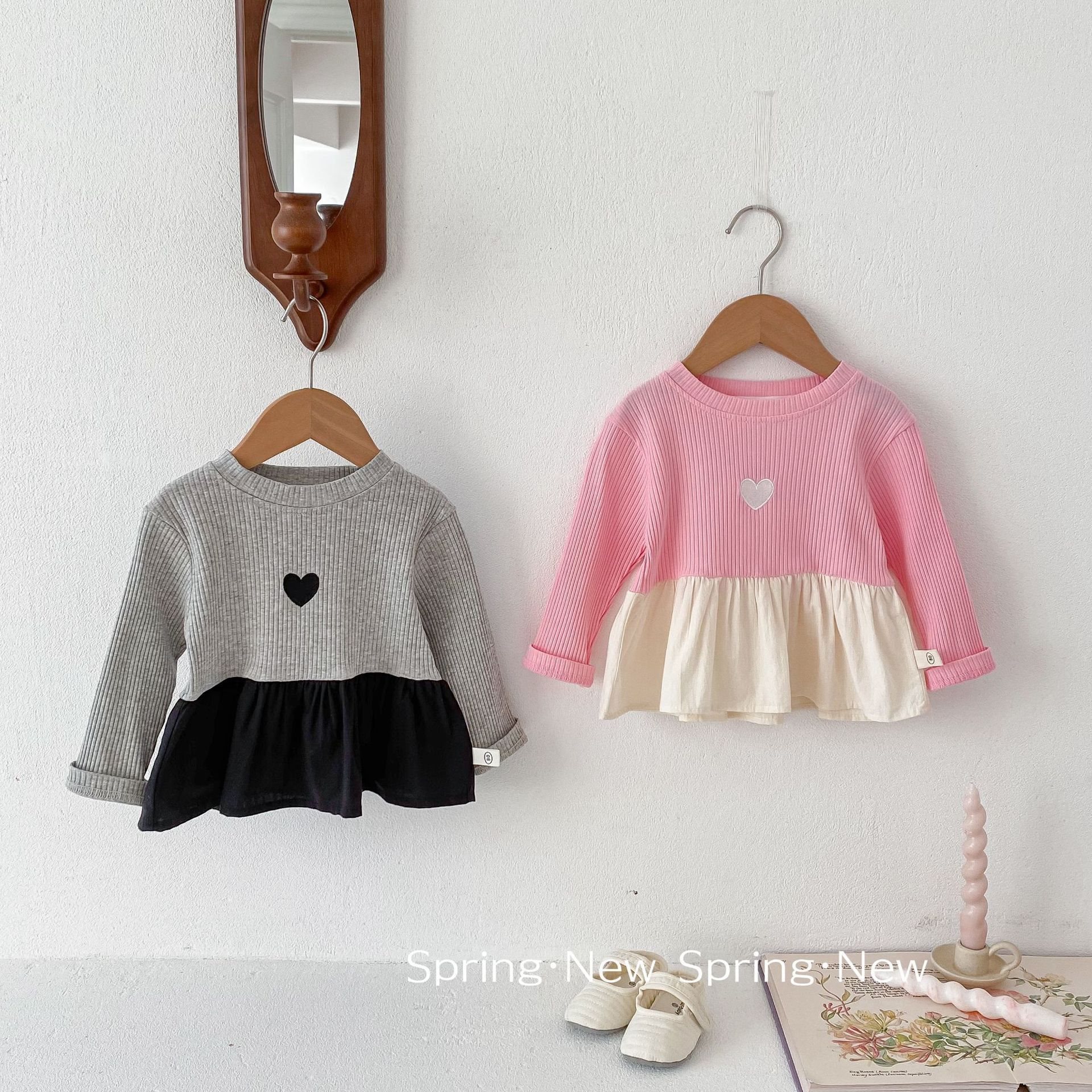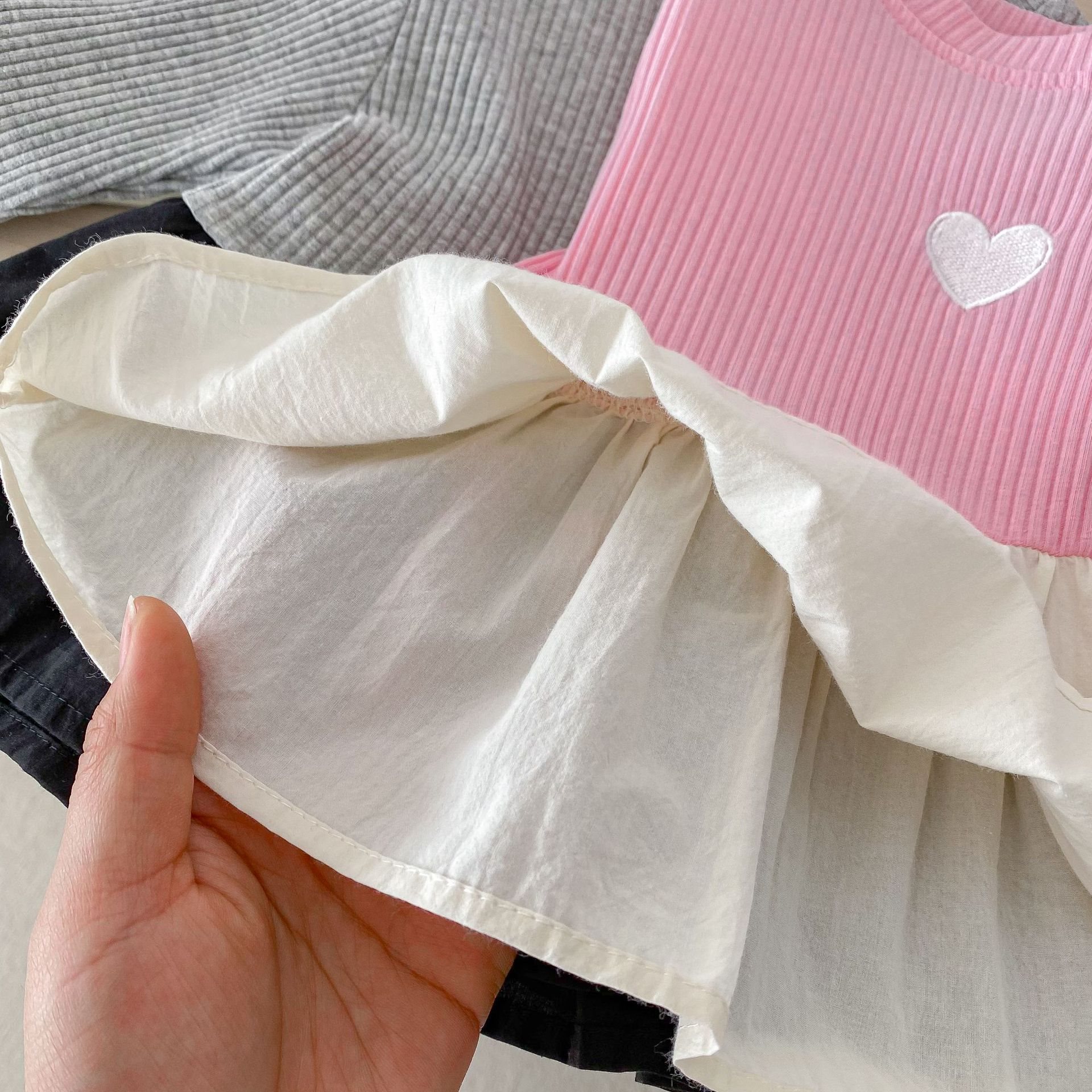 Girls Cute Doll Shirt 0-5 Years Old Baby Girls Spring Simple Love Color Block Top Children’s Pit Skirt Trendy