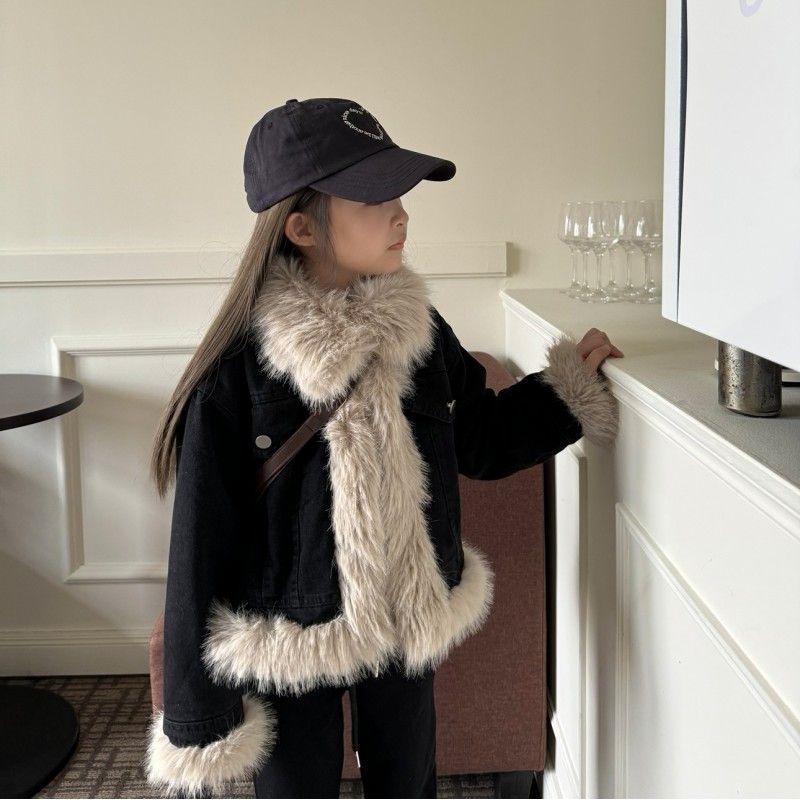 | nameOriginal | Girls' Denim coat 2023 Winter New girls' Korean style thick warm short stitching furry children's cotton-padded coat |