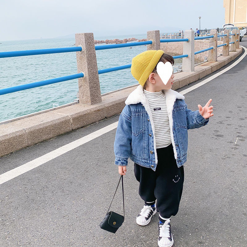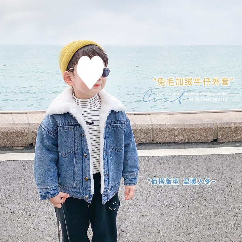 | nameOriginal | Girls' denim coat winter clothes men's fleece-lined thickened baby boys' lamb wool new Korean style western style cross-border |