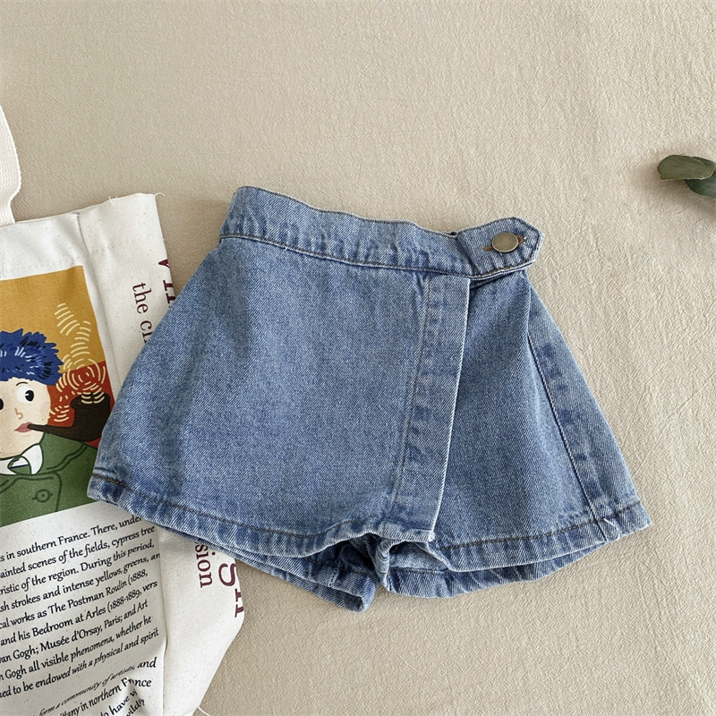 | nameOriginal | Girls denim culottes 2024 summer new children's Korean style button versatile shorts baby girl washed jeans |
