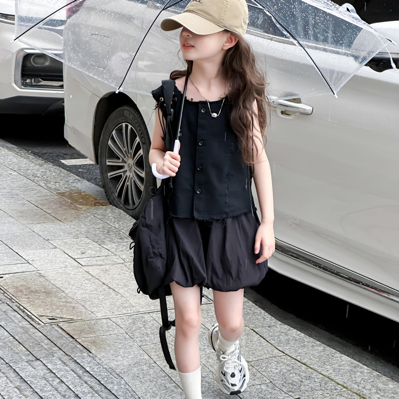 | nameOriginal | Girls' Denim Edge Vest suit Summer 2024 New Style Western Style Children's Middle and Large Children's Flower Bud Shorts Two-piece Set |