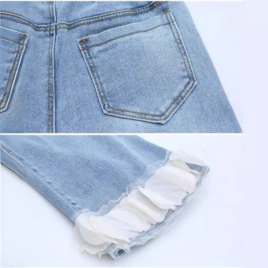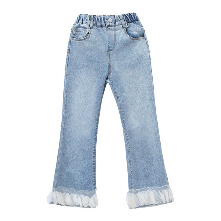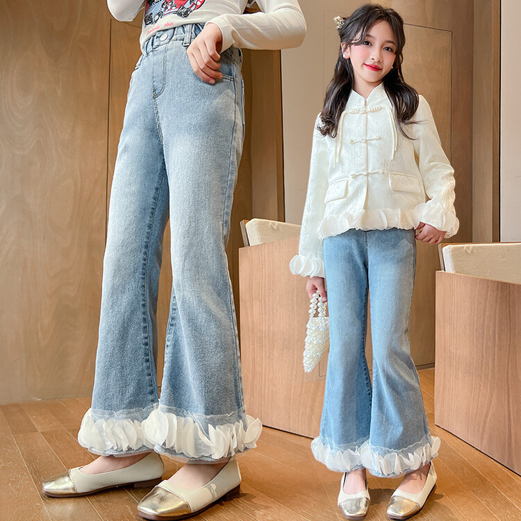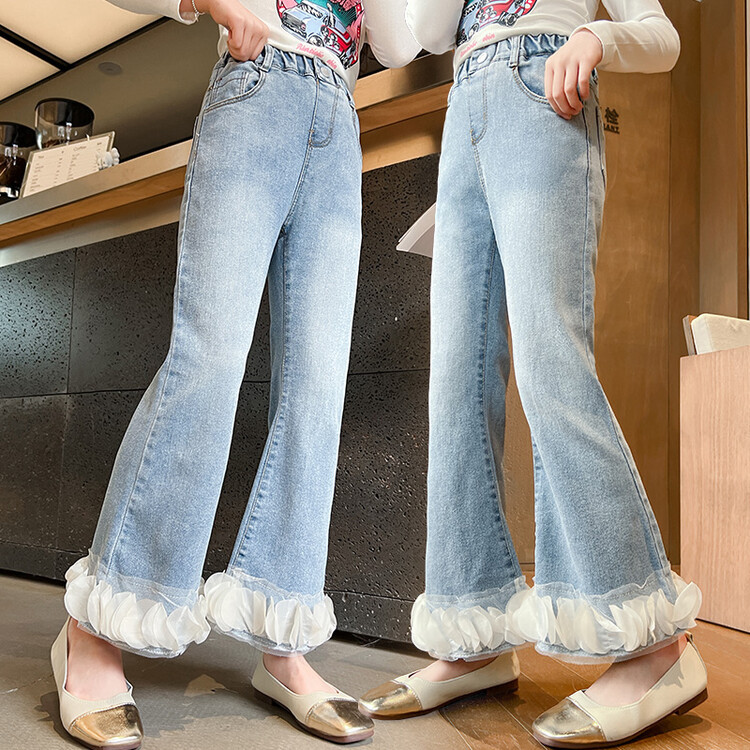 | nameOriginal | Girls' Denim flared pants slim Korean style spring and autumn Chanel style ruffled jeans 2024 spring cross-border delivery |