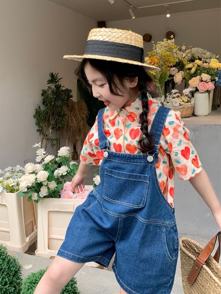 Girls' Denim overalls floral shirt suit 2023 summer new shorts two-piece children's western style baby shirt