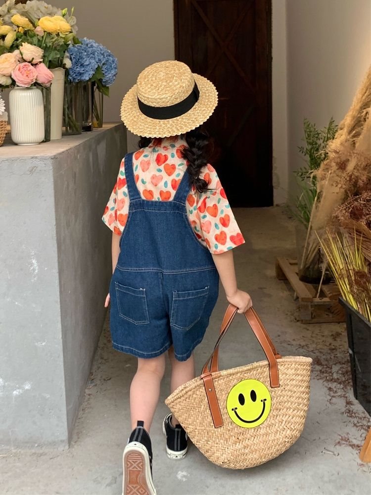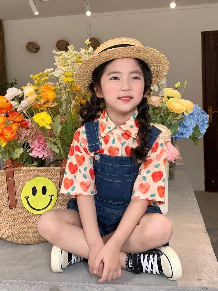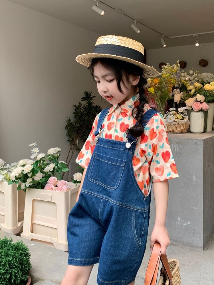 Girls’ Denim overalls floral shirt suit 2023 summer new shorts two-piece children’s western style baby shirt